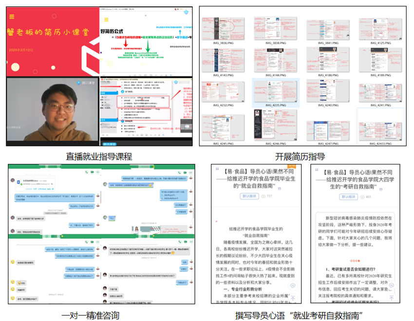 學院高度重視,全體教職工齊參與。在學校就業(yè)工作推進會后,食品學院召開專題工作會議傳達落實中省和校黨委有關精神,成立以書記、院長為組長,副書記、副院長為副組長,各系主任及全體輔導員為成員的學院就業(yè)工作領導小組,凝聚工作合力,階段性研判就業(yè)形勢,推進工作落實。學院黨政班子帶頭對湖北籍畢業(yè)生、建檔立卡畢業(yè)生、新疆籍少數(shù)民族畢業(yè)生實施一對一幫扶。42名專業(yè)教師精準對接97名考研畢業(yè)生,實施“助研導師”輔導計劃。學院制定《食品與生物工程學院疫情防控期間畢業(yè)生就業(yè)創(chuàng)業(yè)工作的實施方案》和《食品與生物工程學院推進本科生就業(yè)工作積分制實施細則》,將就業(yè)工作納入到學院公共事務工作量核算范圍,進一步激勵全員參與就業(yè)。
