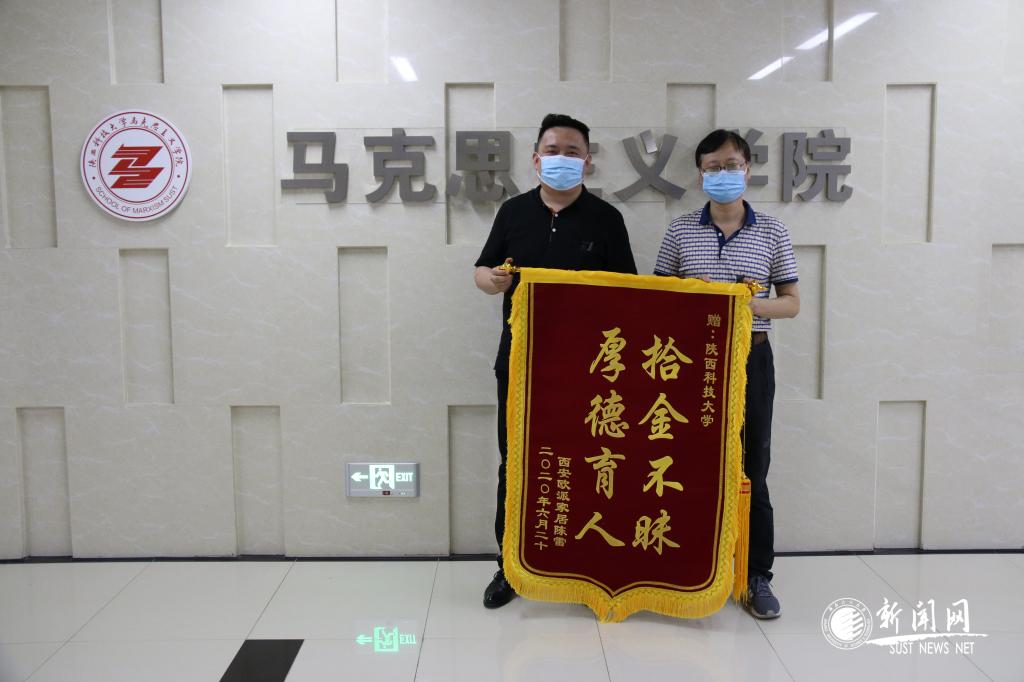6月24日,西安歐派家居陳雷先生專程將“拾金不昧,厚德育人”錦旗送到了馬克思主義學院,向拾金不昧的我校2019級馬克思主義理論專業(yè)碩士研究生謝嘉穎表示感謝,向學校表達敬意。