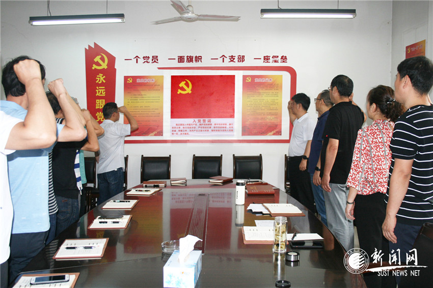 在重溫入黨誓詞環(huán)節(jié),支部書記龔世平帶領(lǐng)全體黨員面向黨旗高舉右拳,高聲宣讀入黨誓詞,再次接受心靈的洗禮,重溫為共產(chǎn)主義事業(yè)奮斗終身、隨時(shí)為黨和人民犧牲一切的的莊嚴(yán)承諾。