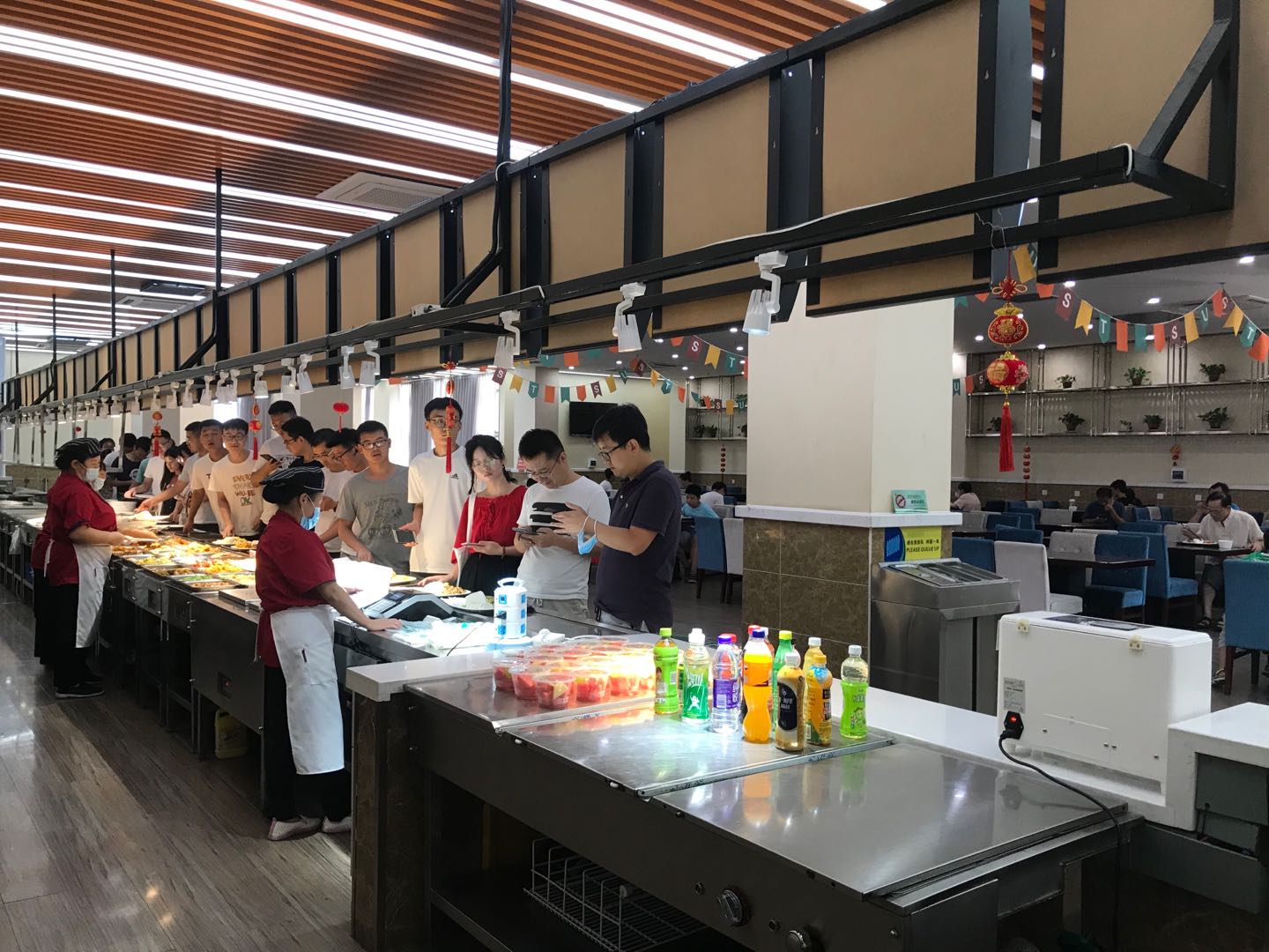 暑假天氣溽熱,校園餐飲服務(wù)卻不打折扣,飲食服務(wù)中心為保障數(shù)千名留校師生的餐飲需求,由馨園餐廳精心備餐、熱情服務(wù),馨園一層風味餐廳17個檔口全部營業(yè),二樓自助餐廳周一到周日每日菜品不重樣,一日三餐為師生供應(yīng)營養(yǎng)健康、口味豐富的餐品。