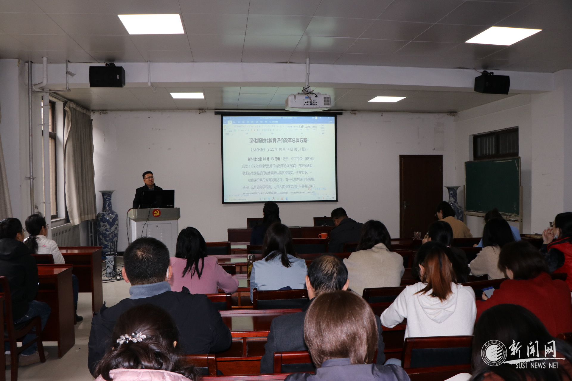 食品學院黨委于11月3日上午,采取召開教職工大會嵌入理論中心組學習的方式,集中學習中共中央、國務院印發(fā)的《深化新時代教育評價改革總體方案》(以下簡稱《總體方案》)。學習會由學院黨委書記訾榮祿主持,學院黨委委員、教工黨支部委員會成員、全體教職工參加會議。