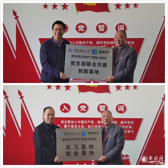 喬明哲、湯偉、王永斌分別代表雙方單位,在與會人員共同見證下進行“黨支部聯合共建創(chuàng)新基地”“就業(yè)實習基地”授牌儀式。