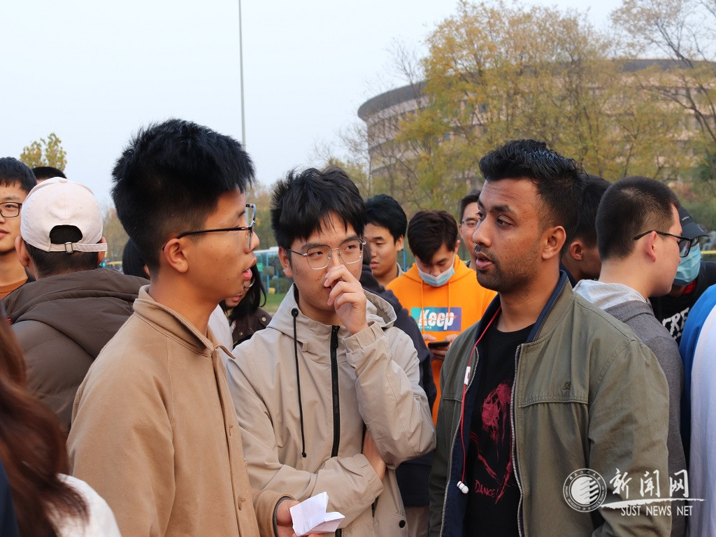 11月10日下午,機(jī)電工程學(xué)院聯(lián)合國(guó)際教育學(xué)院在陜西科技大學(xué)風(fēng)雨操場(chǎng)舉行了“英語(yǔ)提升計(jì)劃—口語(yǔ)立刻說(shuō)”首期團(tuán)建破冰交流活動(dòng),來(lái)自國(guó)際教育學(xué)院的10名留學(xué)生代表和機(jī)電學(xué)院56名本、碩學(xué)生代表參加了此次團(tuán)建活動(dòng)。機(jī)電學(xué)院學(xué)生工作負(fù)責(zé)人王政軍、輔導(dǎo)員王正宏,國(guó)際教育學(xué)院留學(xué)生輔導(dǎo)員薛鈺出席本次活動(dòng)。