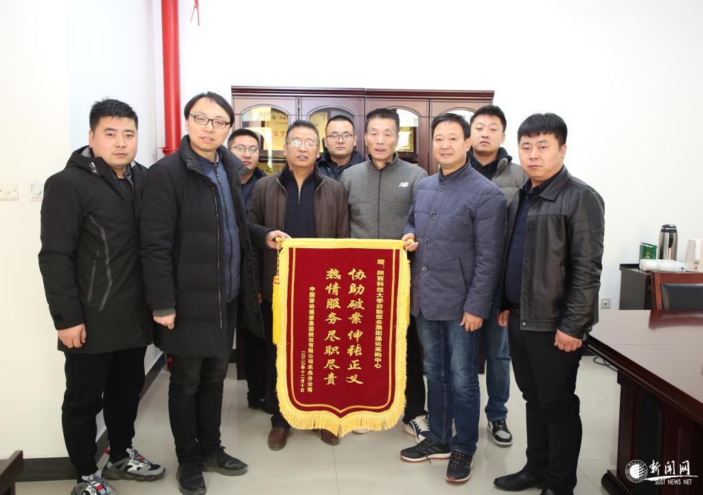 12月22日上午,中國(guó)移動(dòng)未央分公司總經(jīng)理?xiàng)罟庖恍?人來到學(xué)校,向后勤集團(tuán)通訊采購(gòu)中心贈(zèng)送錦旗——“協(xié)助破案、伸張正義 熱情服務(wù)、盡職盡責(zé)”,對(duì)陜西科技大學(xué)表示感謝。后勤集團(tuán)黨總支書記周文濤、總經(jīng)理段新廣及通訊采購(gòu)中心工作人員參加了錦旗贈(zèng)送儀式和座談會(huì)。