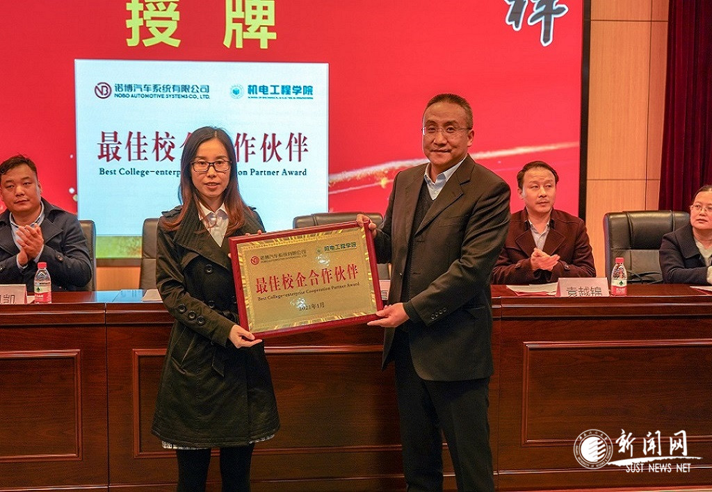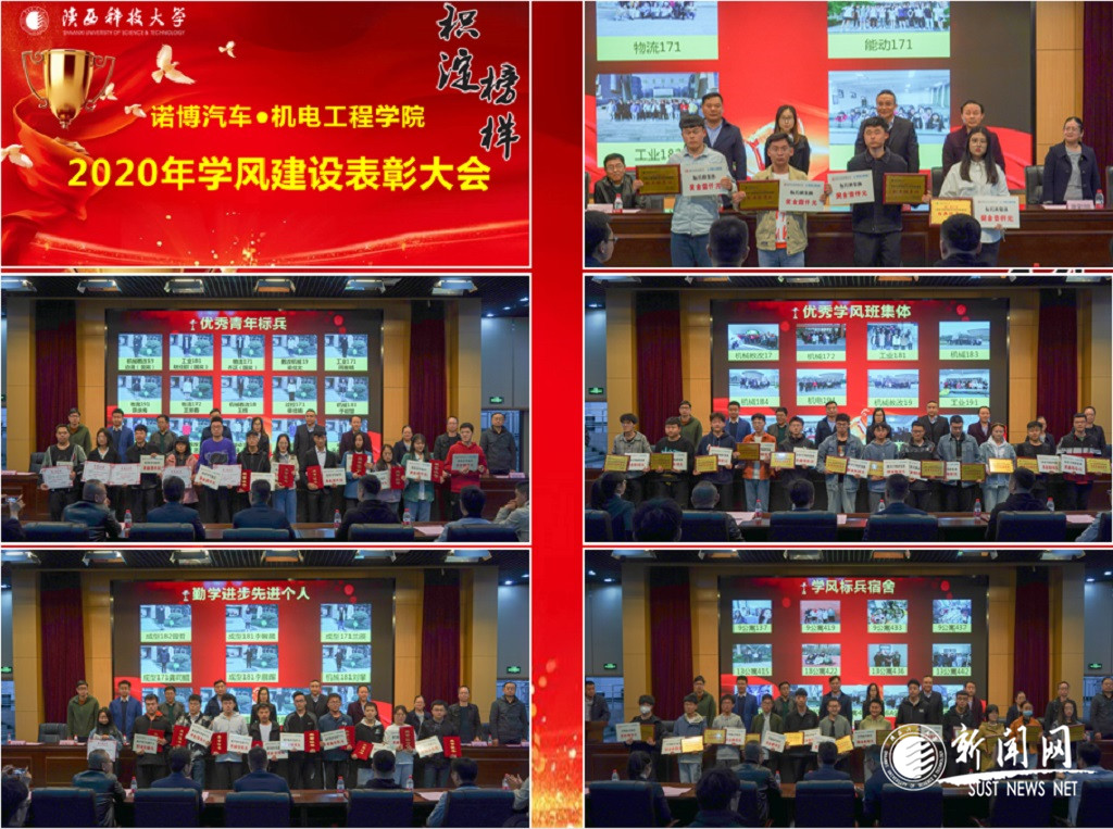 諾博汽車、機電學院進行“最佳校企合作伙伴”授牌儀式。袁越錦宣讀《諾博汽車·機電工程學院“積淀榜樣”2020年學風建設表彰名單》。嘉賓為獲獎學生和集體代表頒發(fā)獎牌、榮譽證書和獎金?!胺e淀榜樣”2020年學風建設表彰對象分為優(yōu)秀青年標兵(15人)、勤學進步先進個人(10人)、標兵班集體(4個)、優(yōu)秀學風班集體(12個)、學風標兵宿舍(13間)五類,表彰在刻苦學習、勇于創(chuàng)新、熱心志愿服務、團結奮進等方面表現(xiàn)突出的學生及集體。本次表彰系列活動通過“積淀榜樣”事跡展示、校企嘉賓授獎、獲獎代表分享感言等環(huán)節(jié),融入榜樣教育、激勵教育和感恩教育。