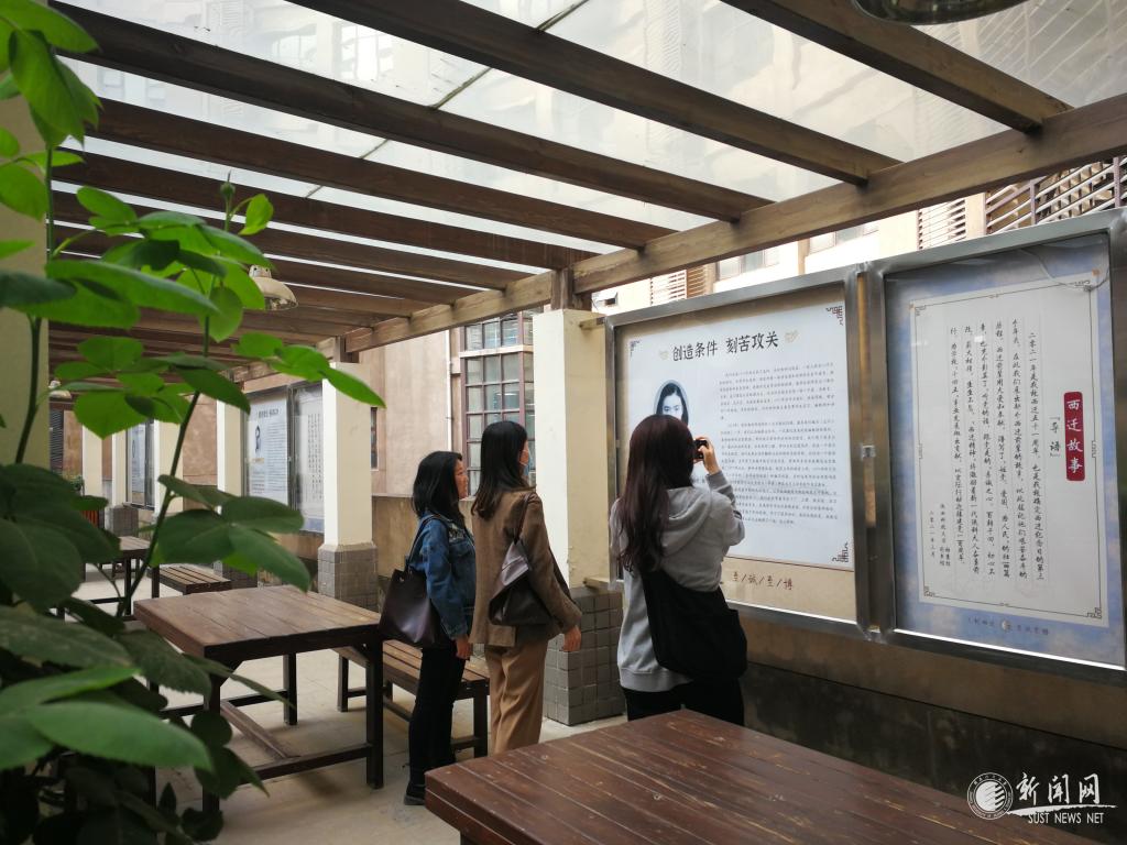 本次展覽由楊宗邃、魏世林、劉昌祺、張啟恭、許淑惠、王金海等六位西遷前輩的故事組成。展覽現(xiàn)場,六位西遷前輩的照片和事跡環(huán)繞中心花園,在學(xué)生的朗朗讀書聲和綠植的生機(jī)勃勃中展開。展覽中一張張質(zhì)樸的臉龐,一個個動人的故事,瞬間吸引了師生讀者的目光,每一位西遷親歷者將他們西遷創(chuàng)業(yè)、傳承西遷精神的故事娓娓道來,讓前來參觀的師生感慨萬千。