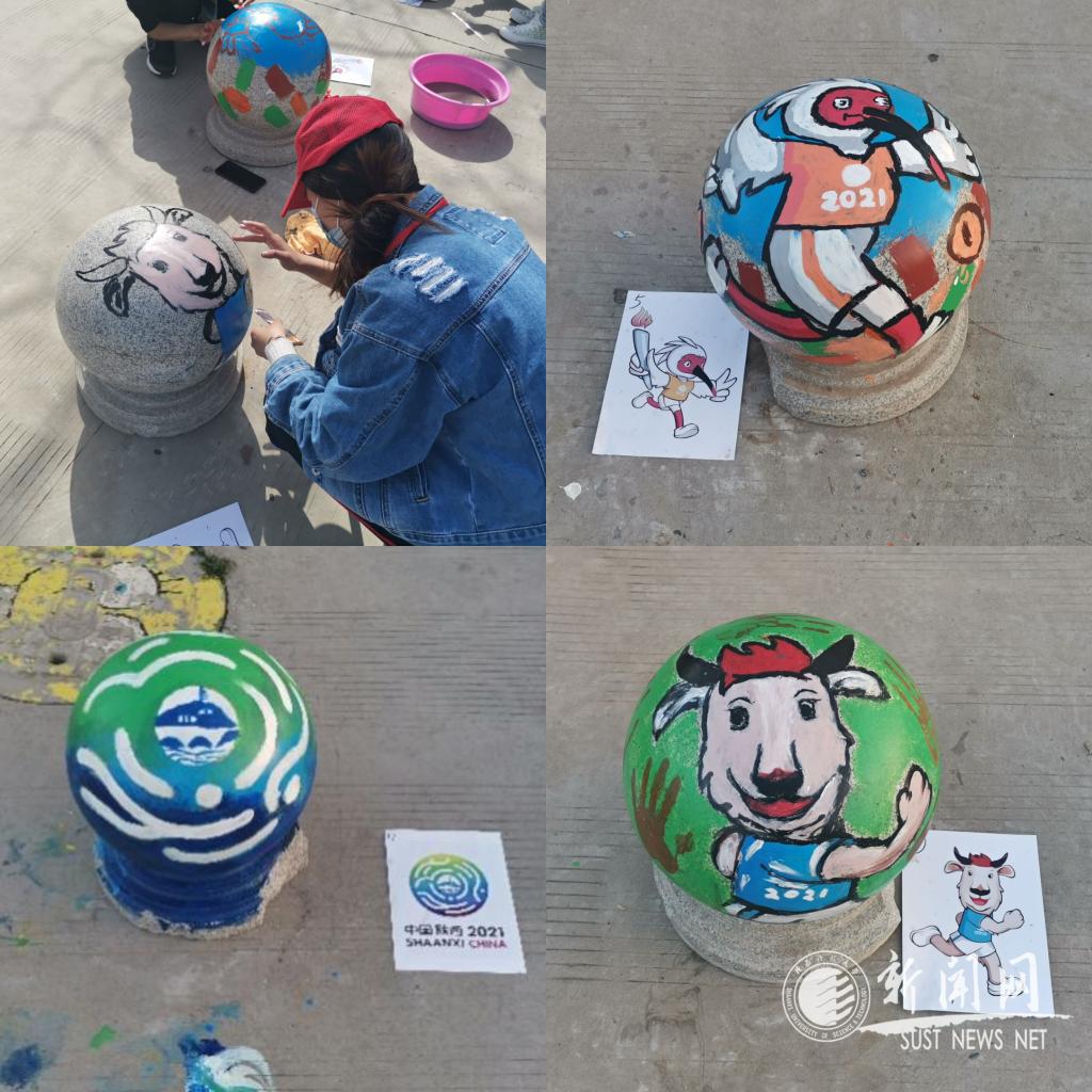 聚力十四運,志愿新風(fēng)采。輕工青團與支付寶捐步平臺合作,進行步數(shù)捐贈,助力貧困地區(qū)建設(shè)。每周累計捐步超百萬步,乘運動之帆,為公益助力。同時,16名志愿者將十四運會徽、吉祥物、?;盏炔世L圖案以及“喜迎建黨一百周年”等標(biāo)語繪制于圖書館門前石墩,助力全運盛會,筑夢最美科大。