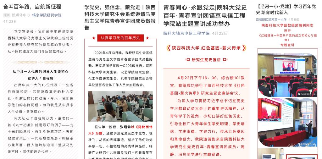 目前,宣講團已成功加入“陜西高校青年愛國奮斗宣講聯(lián)盟”,后續(xù)將遴選優(yōu)秀宣講員深度參與到陜西大學生“青春告白祖國”黨史學習教育微宣講團宣講活動中去。