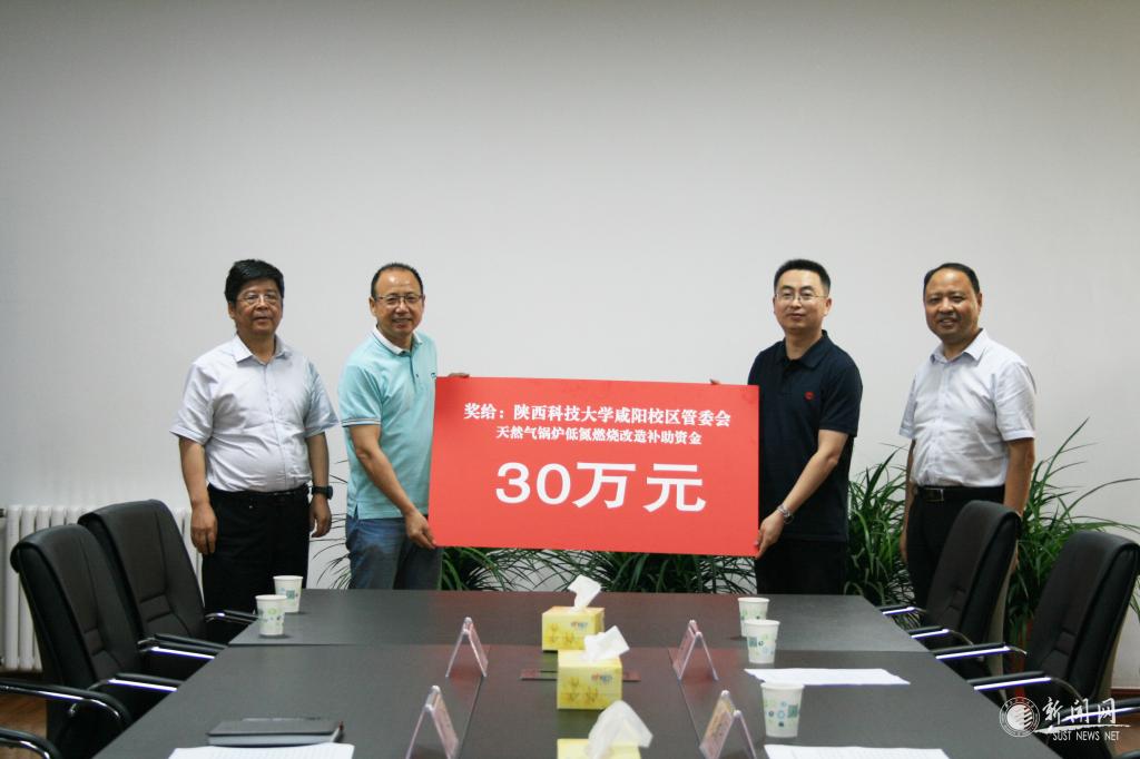 6月17日,為獎(jiǎng)勵(lì)我校咸陽(yáng)校區(qū)燃?xì)忮仩t低氮化改造工作,咸陽(yáng)市秦都區(qū)為咸陽(yáng)校區(qū)管委會(huì)發(fā)放獎(jiǎng)補(bǔ)資金的頒發(fā)儀式在咸陽(yáng)校區(qū)管委會(huì)二樓會(huì)議室舉行。咸陽(yáng)市秦都區(qū)政府副區(qū)長(zhǎng)史航宇,生態(tài)環(huán)境秦都分局局長(zhǎng)楊瑞鋒、副局長(zhǎng)李沖以及咸陽(yáng)校區(qū)管委會(huì)相關(guān)負(fù)責(zé)人參加會(huì)議。