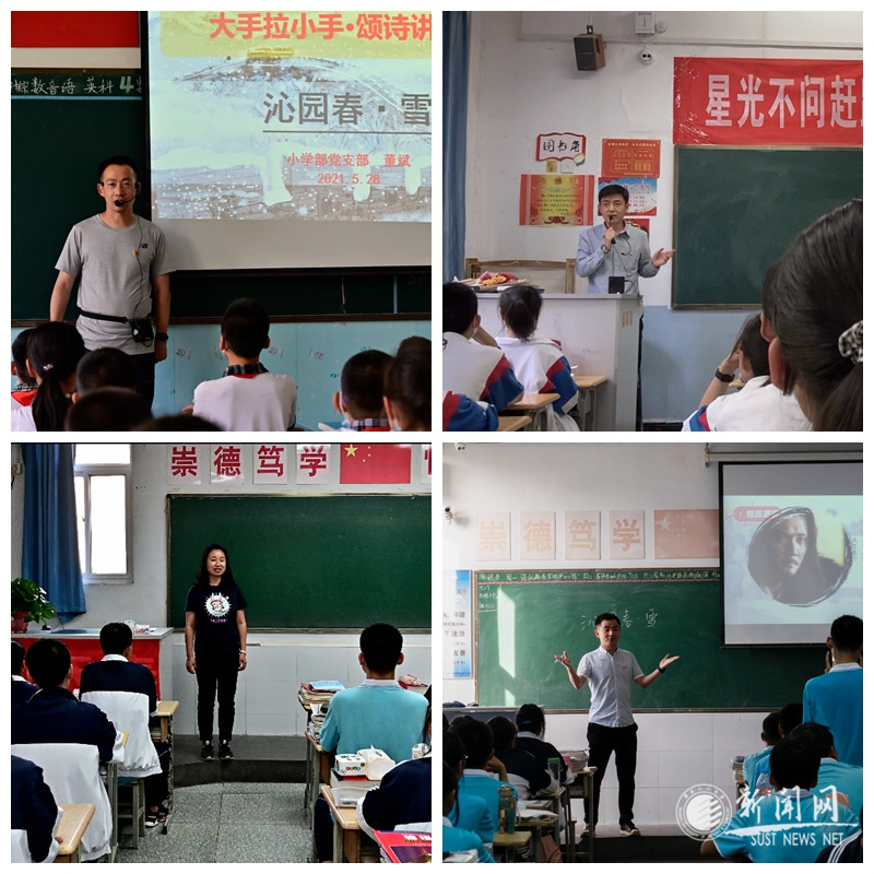 為豐富黨史學(xué)習(xí)教育載體,引導(dǎo)廣大師生從黨史中汲取昂揚(yáng)奮斗力量,附中通過黨團(tuán)組織、德育口、教學(xué)口的共同參與,開展了“大手拉小手·頌詩講黨史”百人百堂活動(dòng),以毛澤東詩詞及背后蘊(yùn)含的黨史故事為主線,通過黨員領(lǐng)導(dǎo)干部和教師帶動(dòng)中小學(xué)生同學(xué)同進(jìn),實(shí)現(xiàn)附中師生黨史學(xué)習(xí)教育全覆蓋。