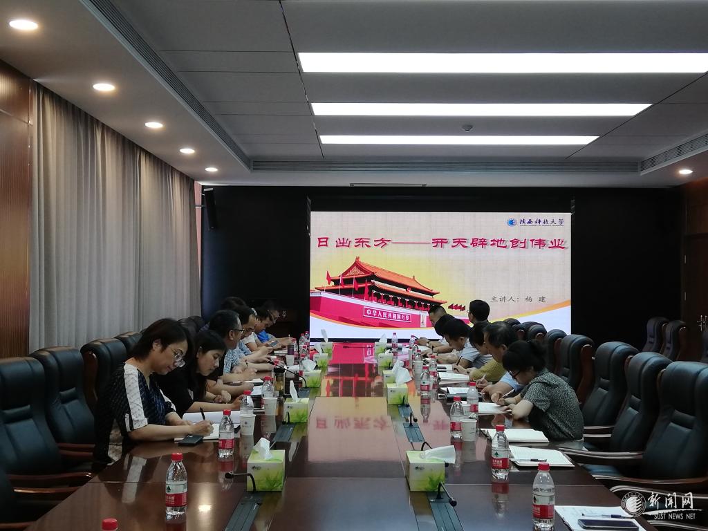 專題黨課強信仰。6月30日,組織部黨支部書記以“日出東方——開天辟地創(chuàng)偉業(yè)”為題給組織部黨支部、人事處黨支部、招采處黨支部全體黨員講黨課。