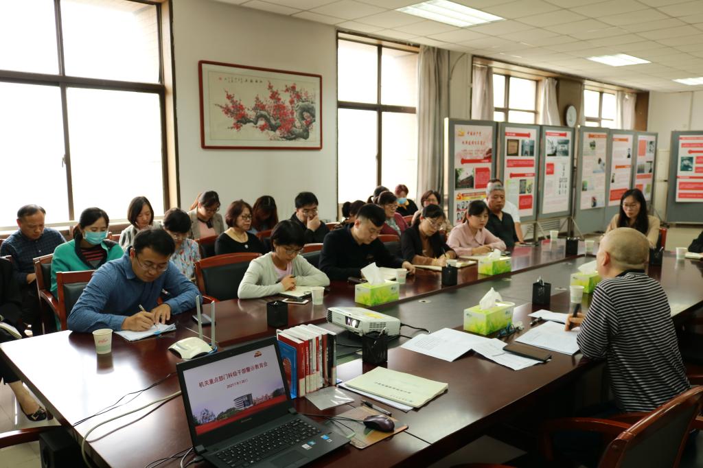 根據(jù)黨史學(xué)習(xí)教育工作安排和校內(nèi)巡察反饋意見,9月30日上午,機(jī)關(guān)黨委組織機(jī)關(guān)重點(diǎn)部門科級(jí)干部在學(xué)校廉政警示教育基地召開警示教育會(huì)議。機(jī)關(guān)黨委紀(jì)委委員、人事處、組織部、財(cái)務(wù)處、科技處、招生辦等部門的全體科級(jí)干部參加了會(huì)議,會(huì)議由機(jī)關(guān)黨委紀(jì)委書記雷如主持。