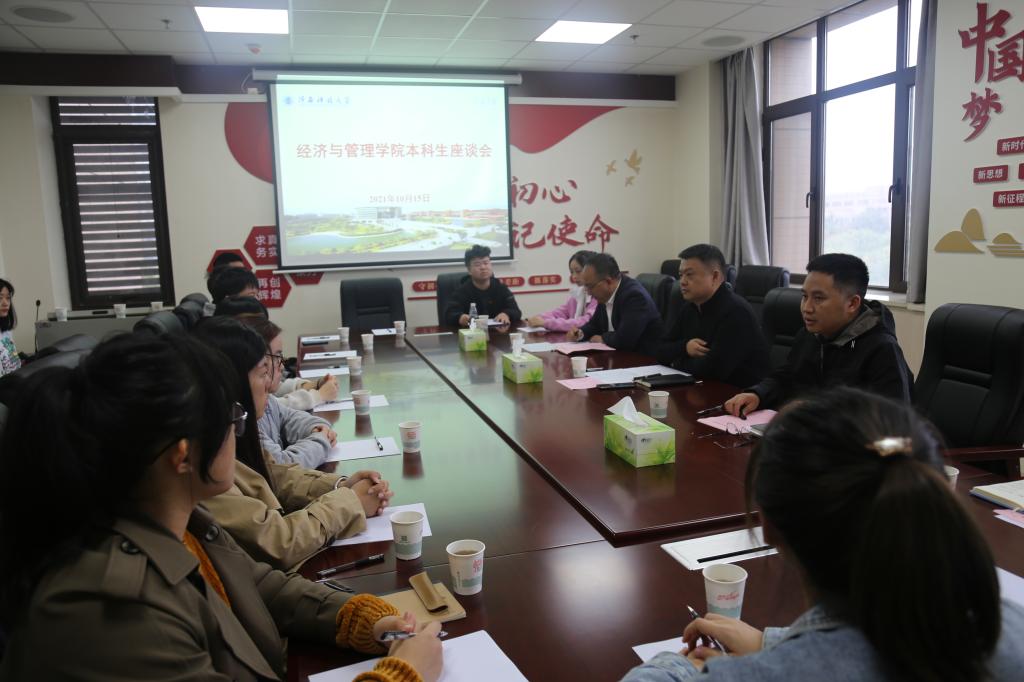 為深入推進(jìn)黨史學(xué)習(xí)教育,全面掌握、解決好學(xué)生學(xué)習(xí)生活中“急難愁盼”的現(xiàn)實(shí)問題,做到真解決問題,解決真問題。經(jīng)管學(xué)院在人文樓A415分別于10月15日、18日舉行了本科生和研究生代表座談會(huì)。學(xué)院班子成員、研究生秘書、輔導(dǎo)員和學(xué)生代表參加座談會(huì)。