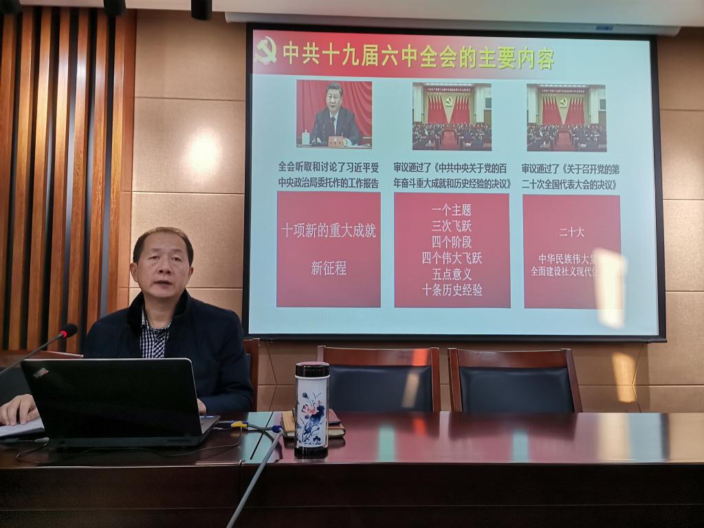 王貴平以《勿忘昨天、無愧今天、不負明天》為主題,分別從背景和原因、重大成就和歷史經驗等三個方面釋解全會精神。他說黨的十九屆六中全會,是一次具有里程碑意義的重要會議,全面總結了黨百年奮斗的重大成就、歷史經驗,鮮明指出了我們黨百年奮斗的歷史意義;要切實增強“四個意識”、堅定“四個自信”、做到“兩個維護”,全會通過的《中共中央關于黨的百年奮斗重大成就和歷史經驗的決議》對推動全黨進一步統(tǒng)一思想、統(tǒng)一意志、統(tǒng)一行動,團結帶領全國各族人民奪取新時代中國特色社會主義新的偉大勝利,具有重大現(xiàn)實意義和深遠歷史意義。