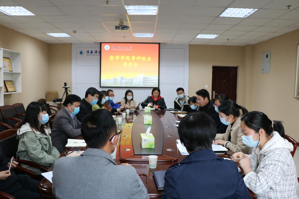 院長(zhǎng)助理宋沛匯報(bào)了學(xué)院2022屆畢業(yè)生就業(yè)、升學(xué)情況,詳細(xì)分析當(dāng)前工作的重點(diǎn)難點(diǎn),并結(jié)合《數(shù)學(xué)學(xué)院畢業(yè)生就業(yè)工作實(shí)施方案》和《數(shù)學(xué)學(xué)院關(guān)于考研學(xué)生網(wǎng)格化指導(dǎo)的實(shí)施方案》,對(duì)下一階段重點(diǎn)工作作了具體安排。