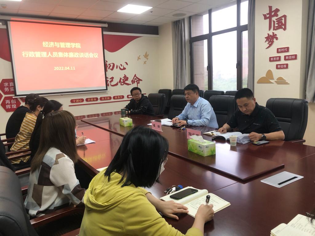 4月11日下午,經(jīng)濟(jì)與管理學(xué)院在人文樓A415召開行政管理人員廉政談話會議,學(xué)院黨委書記崔楠、紀(jì)委書記陶興旺、辦公室主任、本科教學(xué)秘書、研究生秘書、國際交流秘書、科研秘書及全體輔導(dǎo)員參加會議。