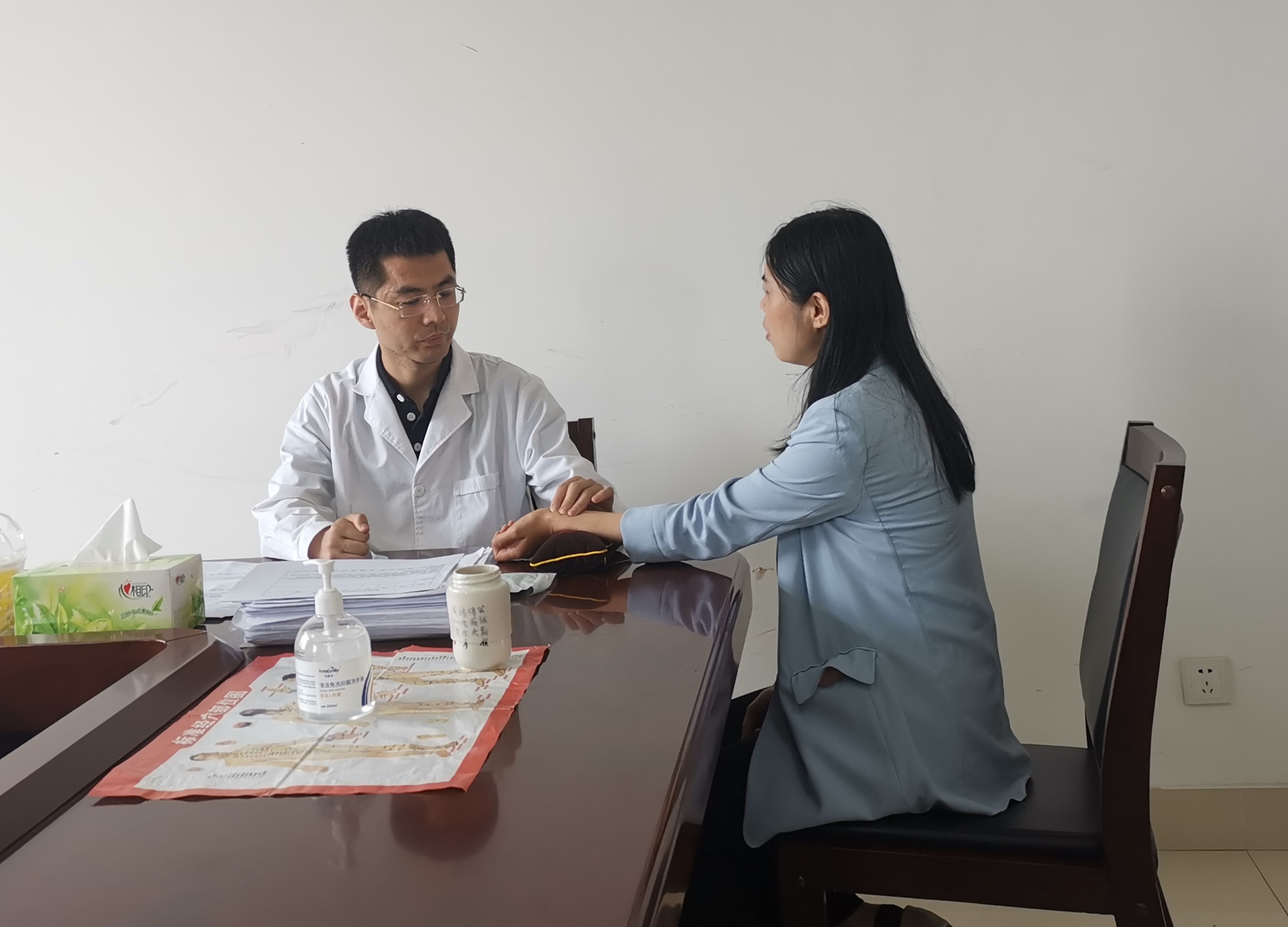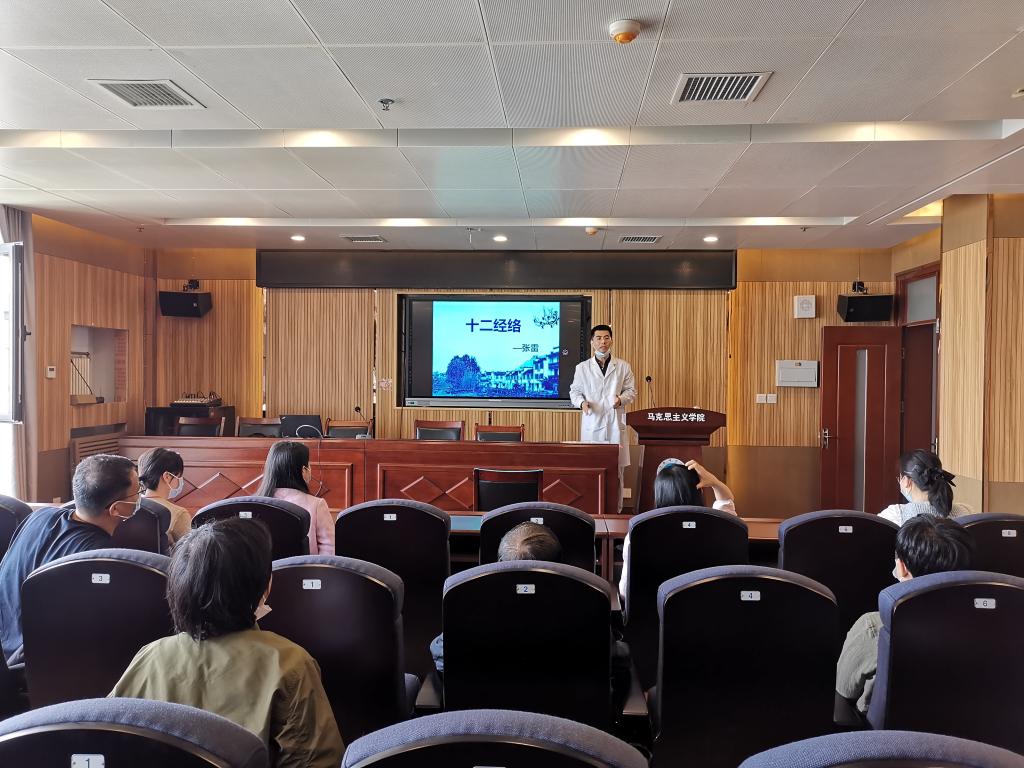 在為期一周的義診檢查活動中,張雷醫(yī)生問診把脈、耐心解答,為每位前來問診的職工詳細(xì)分析身體狀況,給出診療建議,并現(xiàn)場提供了頸椎和腰椎針灸、足底針灸等調(diào)理治療?;顒悠陂g,張雷醫(yī)生還為全院教職工帶來了中醫(yī)健康知識講座,深入淺出地講解了八大病例與十二經(jīng)絡(luò),重點講解了頸椎病、腰椎病、關(guān)節(jié)炎、寒濕病等慢性疼痛類病癥的預(yù)防和調(diào)理,并從健康飲食、適量運動、起居有常、心理調(diào)適等方面介紹了健康的生活方式。