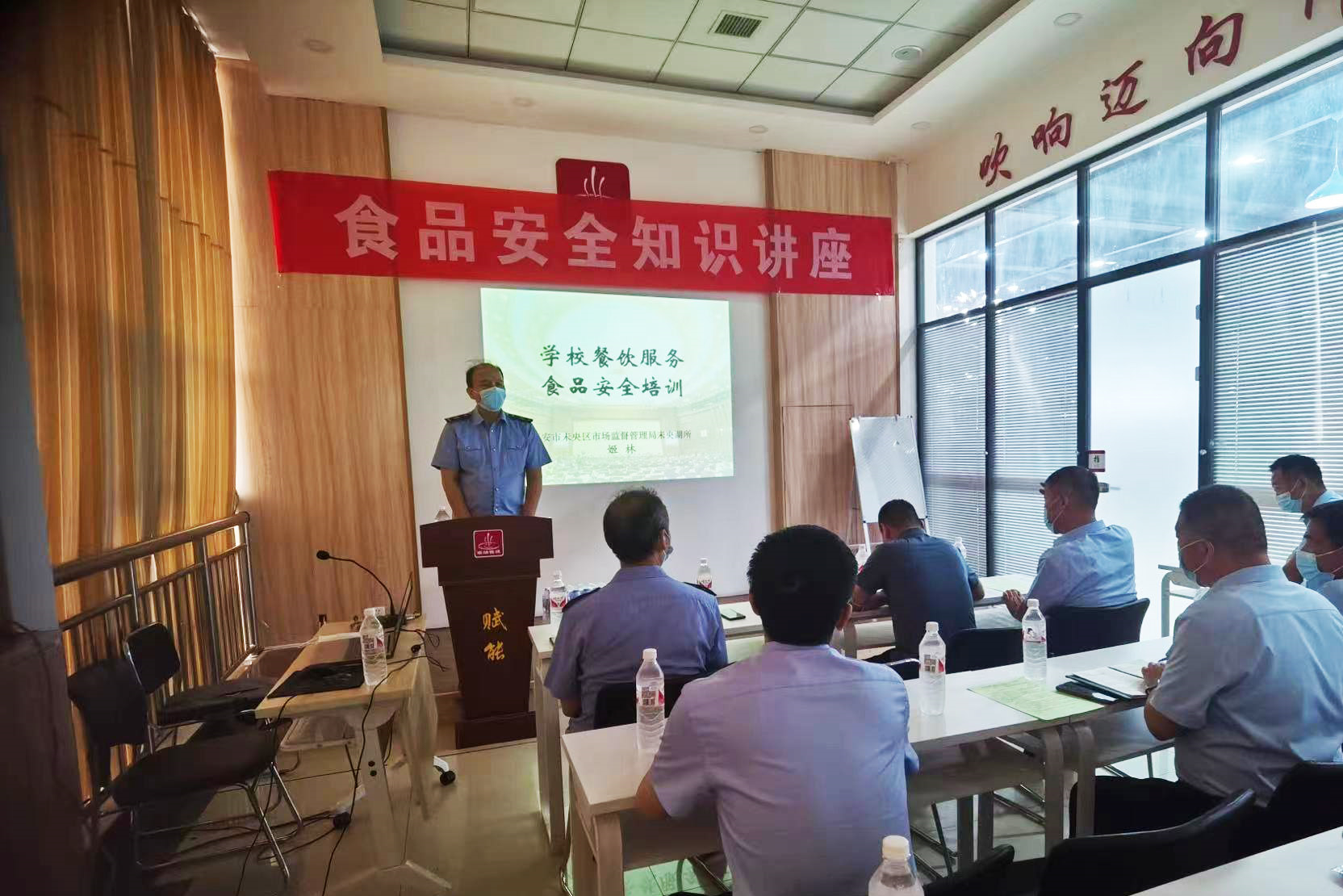 為進(jìn)一步提高我校餐飲從業(yè)人員的食品安全知識水平,筑牢校園食品安全底線,6月9日下午,我校后勤集團(tuán)飲食服務(wù)中心邀請未央湖街道市場監(jiān)督管理所所長程偉一行來我校指導(dǎo)食品安全衛(wèi)生工作并舉辦了食品安全培訓(xùn)講座。講座由后勤集團(tuán)副總經(jīng)理馬玉清主持,各餐廳負(fù)責(zé)人、食品安全督導(dǎo)組成員、外包餐廳經(jīng)理及庫管員等相關(guān)人員參加了本次培訓(xùn)。