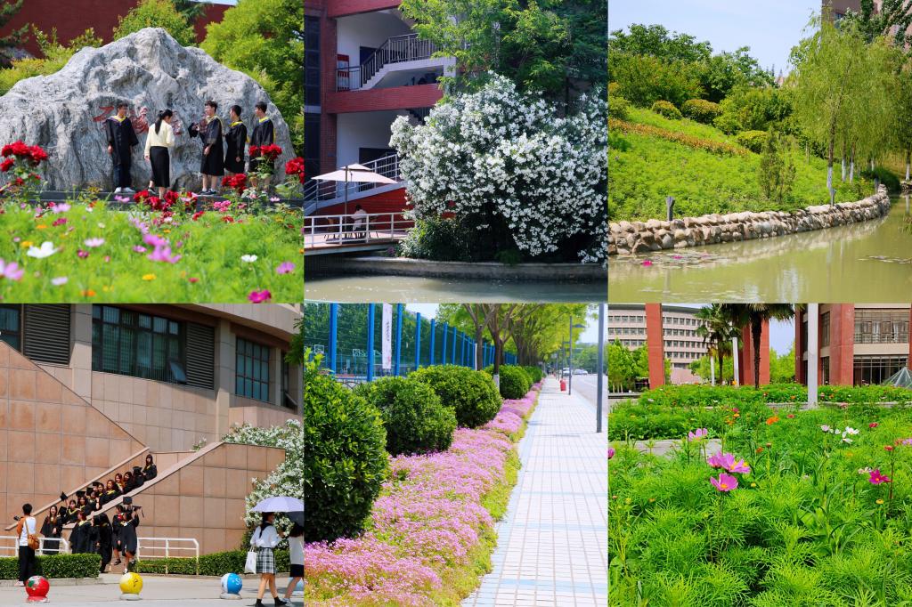 “綠樹陰濃夏日長,樓臺倒影入池塘。水晶簾動微風起,滿架薔薇一院香?!毕奶靵砹?,校園里一派生機勃勃,分外熱鬧。樹木或枝繁葉茂,郁郁蔥蔥,或花團錦簇,熱烈喧囂;綠油油的草地點綴著白的、黃的、粉的小花,就像一幅色彩明麗的油畫;穿著學士服、三五成群正在拍照的,是今年的畢業(yè)生們,青春靚麗的面孔和五彩繽紛的校園美景,定格成了青春最美的回憶。