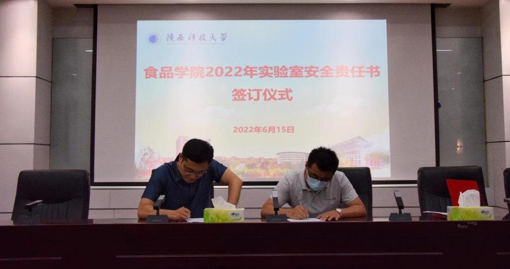 隨后,學(xué)院舉行了2022年度實(shí)驗(yàn)室安全責(zé)任書(shū)簽訂儀式,院長(zhǎng)助理劉寧宣讀《食品學(xué)院實(shí)驗(yàn)室安全責(zé)任書(shū)》具體內(nèi)容。院長(zhǎng)李國(guó)梁代表學(xué)院與相關(guān)研究室、本科教學(xué)實(shí)驗(yàn)室安全責(zé)任人代表簽訂了安全責(zé)任書(shū)。