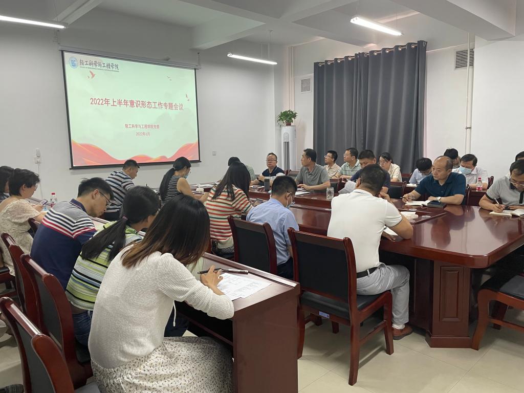 6月17日,輕工科學(xué)與工程學(xué)院組織召開2022年度上半年意識形態(tài)工作專題會議,并開展師德師風(fēng)專項教育。學(xué)院黨政班子成員、黨委委員、黨支部書記、各系室主任、輔導(dǎo)員參加了會議。院黨委書記李新平主持會議。