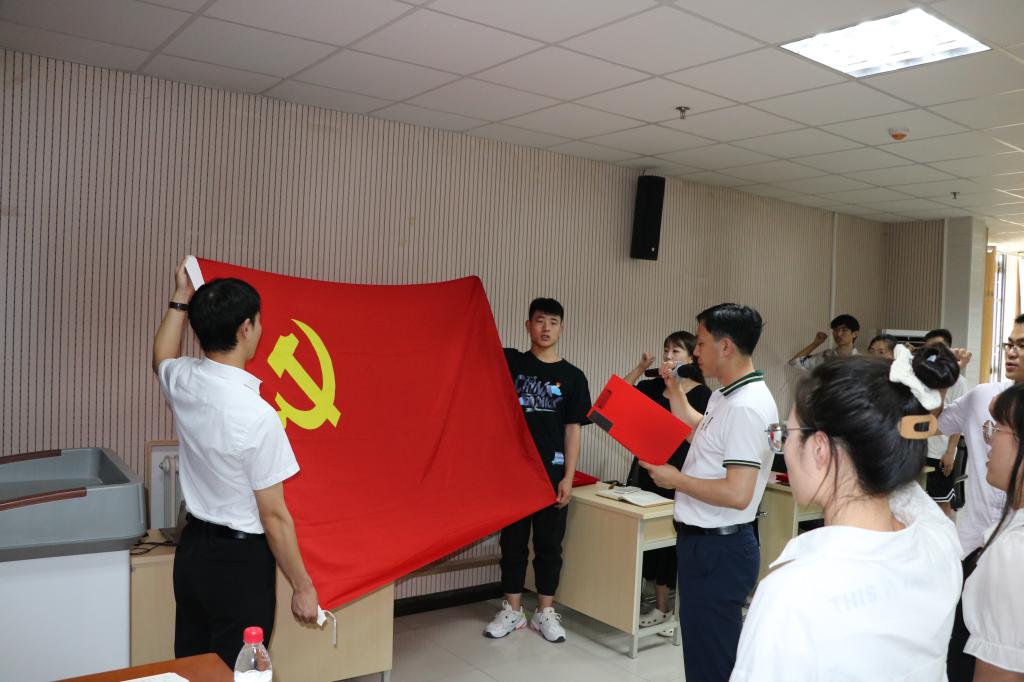 最后,陳源梅、劉建科為上半年新發(fā)展預(yù)備黨員佩戴黨員徽章,全體與會黨員面向鮮紅的黨旗,莊嚴宣誓,重溫入黨誓詞,不忘初心、牢記使命,進一步堅定為黨的事業(yè)奮斗終身的信念。
