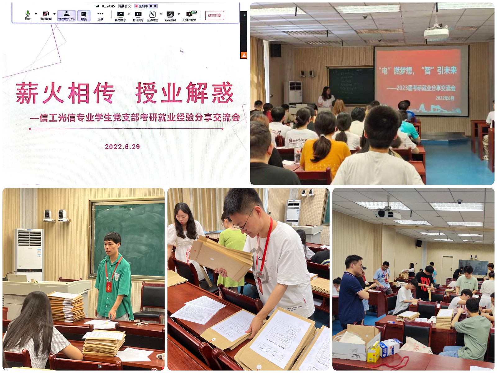站好最后一班崗,堅(jiān)定信念再揚(yáng)帆。6月29日至7月1日,電智學(xué)院各學(xué)生黨支部組織“暖心送別、筑夢起航”主題黨日活動(dòng)。信工光信專業(yè)本科生黨支部線上線下配合組織座談交流會(huì),提升畢業(yè)生黨員愛校榮校意識(shí);網(wǎng)絡(luò)物聯(lián)網(wǎng)專業(yè)本科生黨支部組織考研就業(yè)經(jīng)驗(yàn)交流會(huì)發(fā)揮朋輩教育作用;計(jì)算機(jī)專業(yè)本科生黨支部、電子專業(yè)本科生黨支部、研究生第三黨支部圍繞離校工作開展志愿服務(wù)活動(dòng),教育畢業(yè)生黨員始終堅(jiān)持黨員標(biāo)準(zhǔn),發(fā)揮先鋒模范作用,為黨旗增輝,為母校添彩。