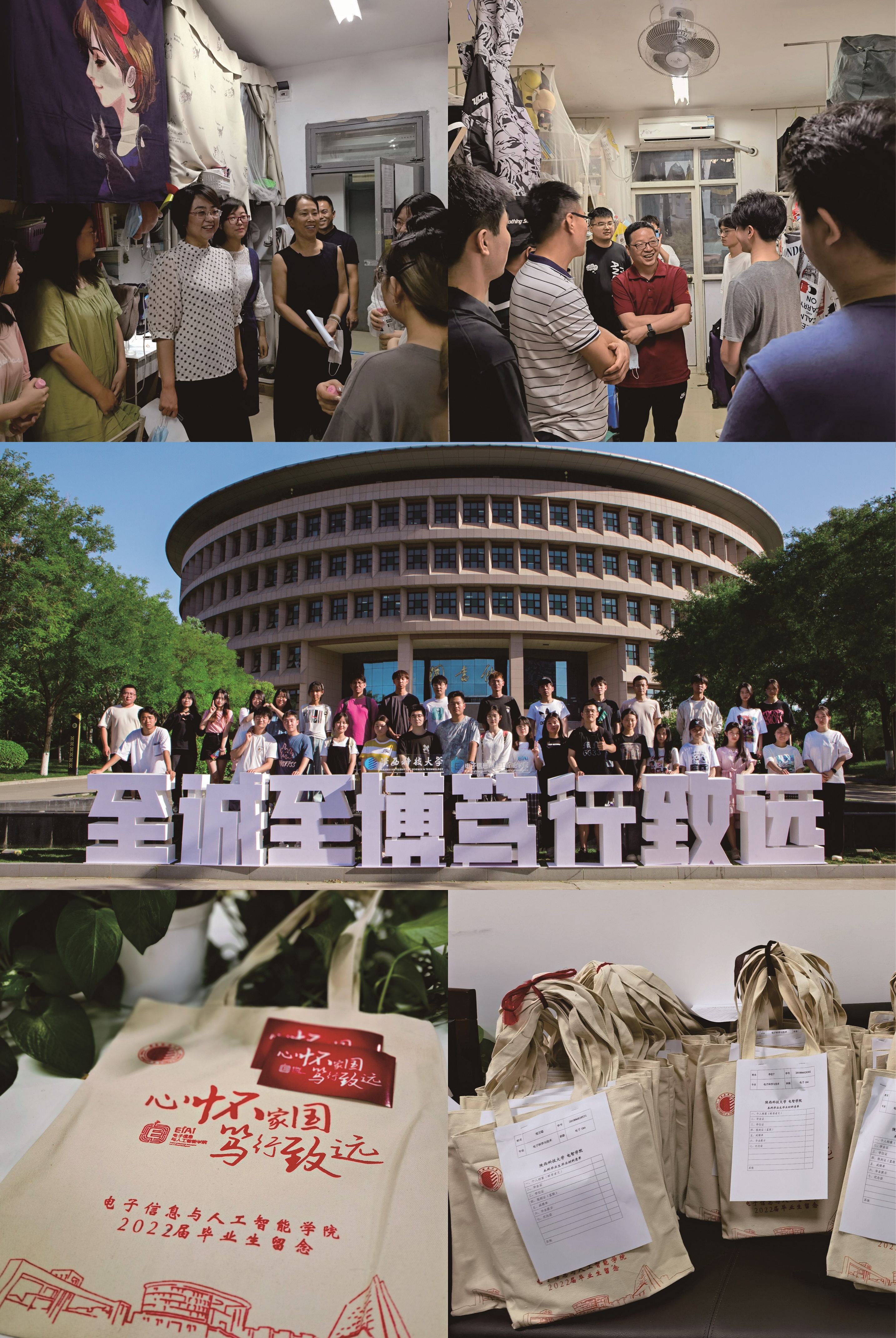 “貼心化”服務(wù)文明離校,激發(fā)“愛校情”,奔赴新征程。學(xué)院持續(xù)加強(qiáng)文明離校期間的安全教育,學(xué)院班子、專業(yè)教師深入宿舍,開展“暖心送別 筑夢起航”看望、慰問畢業(yè)生活動,輔導(dǎo)員每天深入宿舍與畢業(yè)生談心交流,倡導(dǎo)畢業(yè)生們在離校前與老師和同學(xué)們真誠辭行,做到有度歡聚、溫情離別。為實現(xiàn)疫情下畢業(yè)生家長、親友、校友親臨畢業(yè)典禮現(xiàn)場的期盼,首次對學(xué)院2022屆本科生畢業(yè)典禮暨學(xué)位授予儀式進(jìn)行視頻和圖片線上直播,兩個小時獲得了近14萬的瀏覽量,以“云畢業(yè)”的方式為2022屆畢業(yè)生精心的上好“最后一課”。開展“心懷家國 篤行致遠(yuǎn)”文明離校系列活動,拍攝主題紀(jì)念視頻、定制留影標(biāo)語、設(shè)計主題包袋、胸貼,讓校訓(xùn)、院訓(xùn)永在心間,全方位營造了珍惜離別、感恩母校的和諧氛圍,確保畢業(yè)生安全、文明、有序、和諧離校。