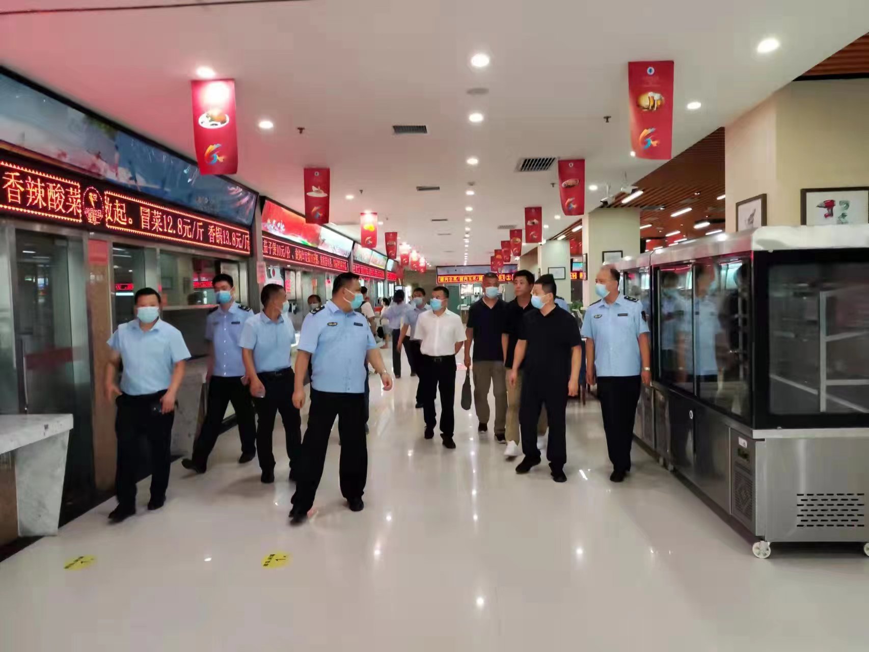 8月2日上午,未央?yún)^(qū)市場監(jiān)督管理局黨委書記、局長孫海鵬,副局長孫輝,未央湖市場監(jiān)管所所長程偉一行蒞臨我校檢查指導(dǎo)食品安全和疫情防控工作。后勤服務(wù)集團(tuán)黨總支副書記姬海鋒、副總經(jīng)理劉強(qiáng)及飲食服務(wù)中心負(fù)責(zé)人陪同檢查。
