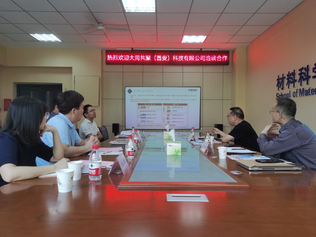 為進(jìn)一步促進(jìn)產(chǎn)學(xué)研開放合作,近日,大同共聚(西安)科技有限公司董事長聶新宇、總經(jīng)理李陶琦來我校材料學(xué)院(文物保護(hù)科學(xué)與技術(shù)學(xué)院)洽談科研合作。材料學(xué)院院長朱建鋒,副院長劉輝、王卓,劉曉旭教授及相關(guān)科研領(lǐng)域教師參加了簽約儀式,會(huì)議由劉輝主持。