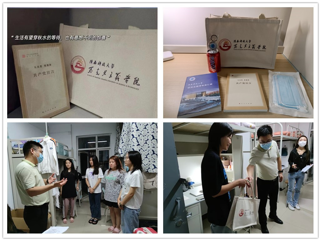 當(dāng)晚,馬院院長助理孔慶金走訪了每一間新生宿舍,為同學(xué)們送去學(xué)院的關(guān)心關(guān)懷和良好祝愿,同時傾聽同學(xué)們對線上學(xué)習(xí)、住宿環(huán)境、疫情防控等方面的訴求和建議,并叮囑同學(xué)們盡快適應(yīng)和規(guī)劃好研究生學(xué)習(xí)生活,以飽滿的精神狀態(tài)開啟人生新的征程。