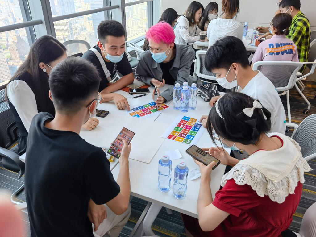 線下實踐階段,學(xué)生們參與到聯(lián)合國工業(yè)發(fā)展組織-全球科創(chuàng)中心、外交部南南合作促進(jìn)會和歐盟中國委員會上海長三角中心3個國際組織的實地實踐活動中。在聯(lián)合國工業(yè)發(fā)展組織-全球科創(chuàng)中心,學(xué)生們以聯(lián)合國17個可持續(xù)發(fā)展目標(biāo)為主題,思考并闡述同學(xué)們視角下的貧困、資源、健康、生產(chǎn)、教育等國際社會關(guān)注的熱點問題和可能的解決方案,以小組為單位現(xiàn)場查找資料繪制海報演講匯報。在參訪外交部南南合作促進(jìn)會時,上海辦主任、前中國駐多倫多總領(lǐng)事參贊洪涌清通過自己的外交生涯成長經(jīng)歷給同學(xué)們上了生動的一課。在歐盟中國委員會上海長三角中心,同學(xué)們分組以路演的形式,組織策劃并匯報選定的國際組織在年預(yù)算200萬人民幣前提下的全年工作計劃及活動方案。