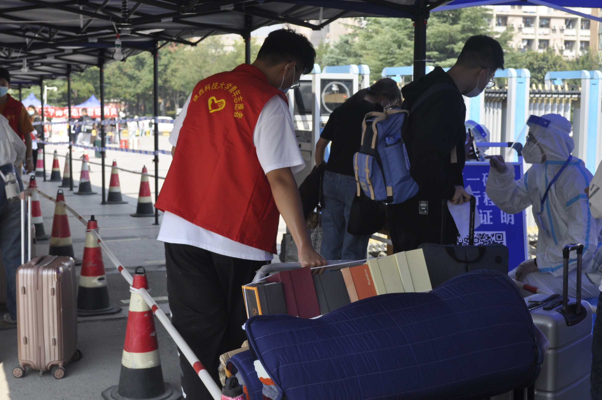 整體統(tǒng)籌規(guī)劃,細化迎新內容。在本次迎新工作中,校團委4位教師為新生的入學奔波在第一線,從早晨6點至傍晚11點全程17小時駐守迎新點,全流程同志愿者一起開展車輛引導、行李搬運、新生家長疏導、新老生入校等志愿服務工作,不懼風吹雨打,用實際行動踐行了“不管多晚,等你回家”的承諾,充分發(fā)揮為人師表、以身作則的榜樣力量。我校青年志愿者一體雙翼,分區(qū)設崗,校外在火車站、汽車站、西安北站等3個重要交通站點提供返校學子接站服務;校內設有家長引導、憑證核查、行李搬運、宿舍引導等多個崗位引導新生入校報到,他們同校團委教師一起實力護航新生入學“第一站”,為疫情下科大學子順利返校提供了堅實保障。