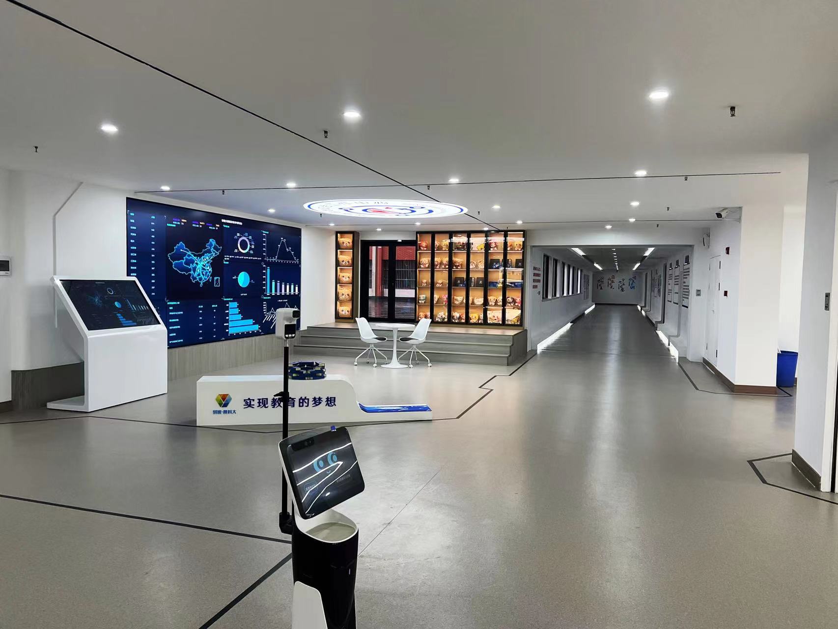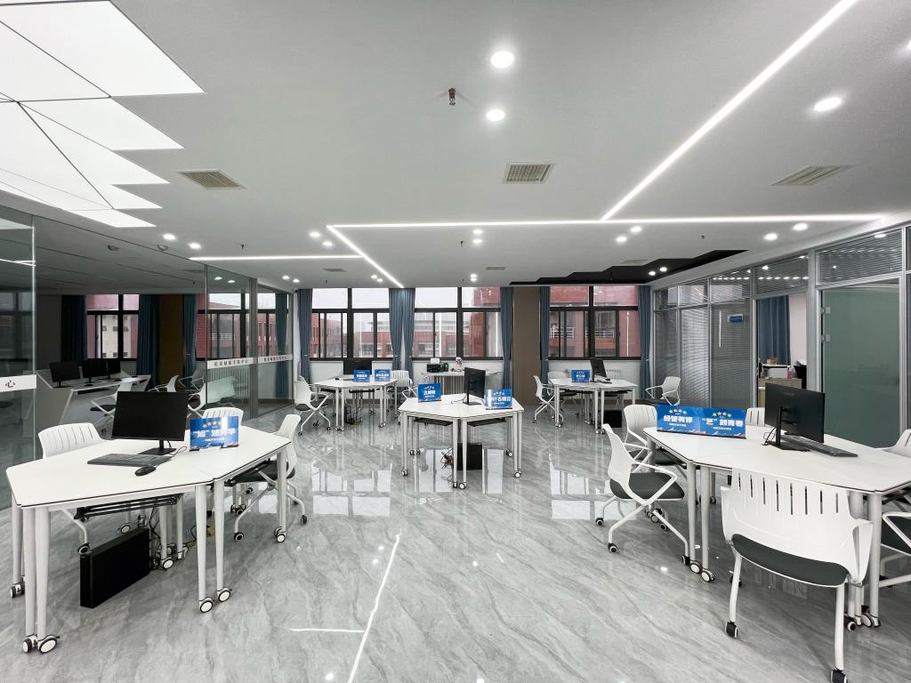 網(wǎng)絡(luò)思政中心二期面積約550㎡,建設(shè)內(nèi)容主要為“兩中心一空間”,即精準(zhǔn)賦能研究中心、網(wǎng)絡(luò)思政教育研究中心、優(yōu)質(zhì)網(wǎng)絡(luò)文化作品培育眾創(chuàng)空間三個創(chuàng)新平臺的建設(shè)。由大廳標(biāo)識區(qū)域、易班網(wǎng)薪商城、互動融媒大屏展示區(qū)域、文化長廊、精準(zhǔn)賦能研究中心、優(yōu)質(zhì)網(wǎng)絡(luò)文化作品培育眾創(chuàng)空間、網(wǎng)絡(luò)思政研究中心七個部分組成。