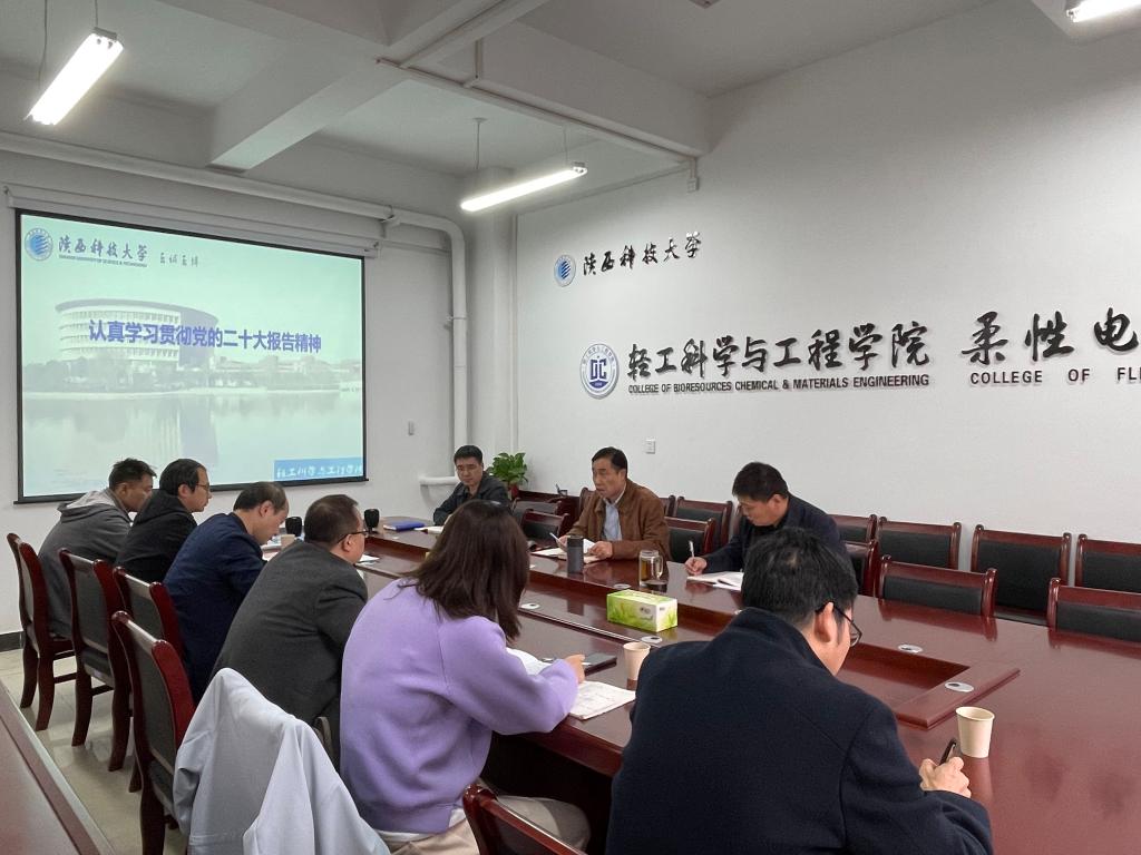 10月28日,輕工科學(xué)與工程學(xué)院(柔性電子學(xué)院)召開(kāi)黨委理論學(xué)習(xí)中心組會(huì)議專(zhuān)題學(xué)習(xí)黨的二十大精神,研究部署學(xué)習(xí)宣傳工作。學(xué)院黨委委員、組織員參加會(huì)議。輕工學(xué)院黨委書(shū)記李新平主持會(huì)議并領(lǐng)學(xué)相關(guān)內(nèi)容。