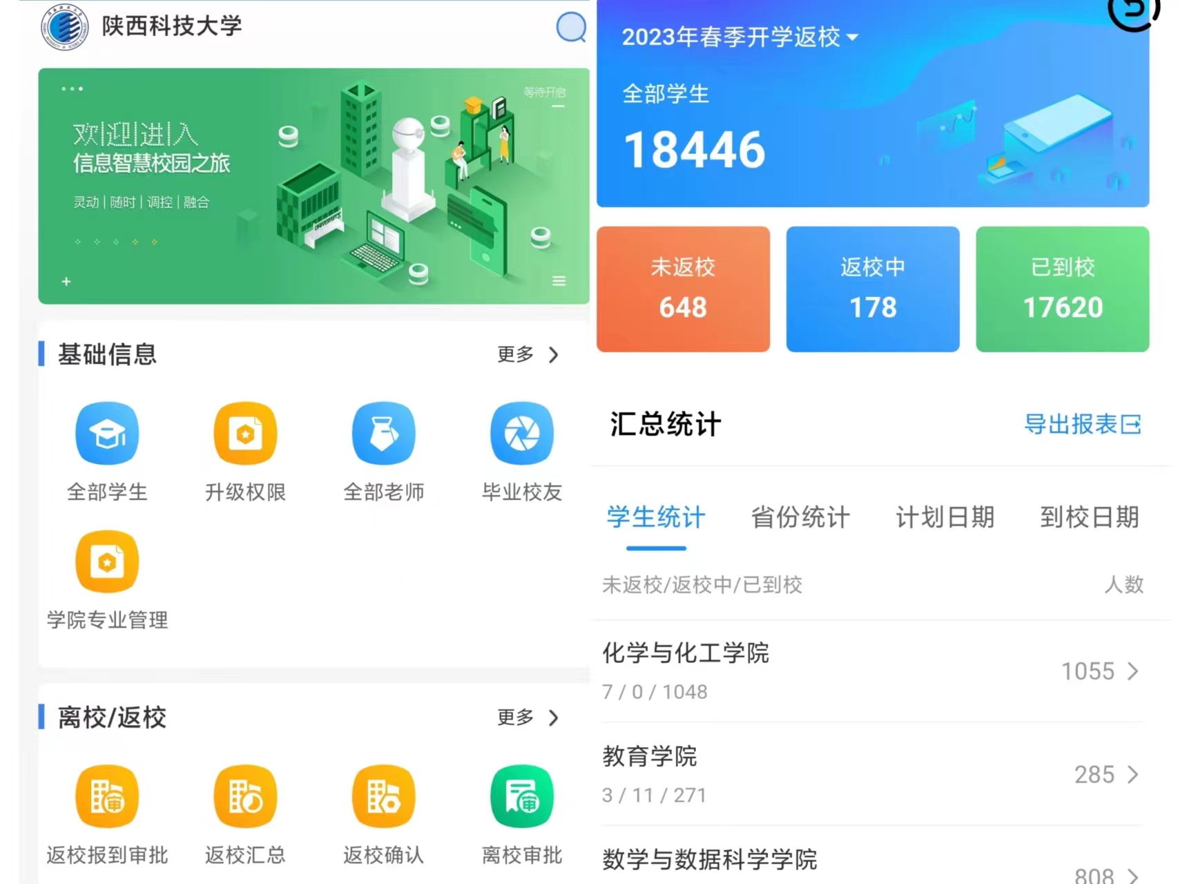 為保障返校工作平穩(wěn)有序開展,開學(xué)前夕,在學(xué)校統(tǒng)籌安排下,網(wǎng)絡(luò)思想政治工作中心會同學(xué)工部、校團委等部門對基于易班的學(xué)生日常管理系統(tǒng)進行了全面優(yōu)化升級。新系統(tǒng)涵蓋日常管理、政工隊伍、第二課堂、心理預(yù)約等多個板塊。其中返校功能就給師生們帶來了全新體驗。在以往返校申報的基礎(chǔ)上,詳細劃分未返校、返校中、已到校等多個類別,異常行程自動報錯,到校后GPS自動識別定位。返校全程環(huán)環(huán)相扣,實時數(shù)據(jù)動態(tài)更新,輔導(dǎo)員一機在手,即可總攬全局,極大程度提升了工作的便利化、人性化和數(shù)據(jù)化。