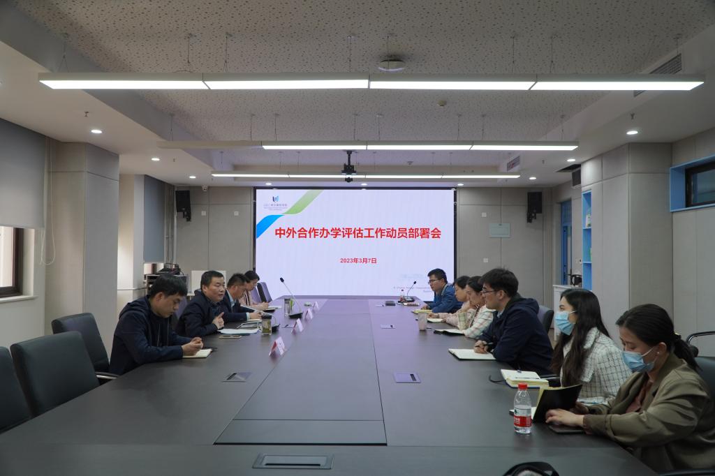 薛朝華對(duì)學(xué)院2023年度中心工作進(jìn)行安排部署,并重點(diǎn)對(duì)教育部中外合作辦學(xué)評(píng)估指標(biāo)體系進(jìn)行解讀,明確了自評(píng)報(bào)告撰寫的任務(wù)分工、注意事項(xiàng)以及時(shí)限要求。