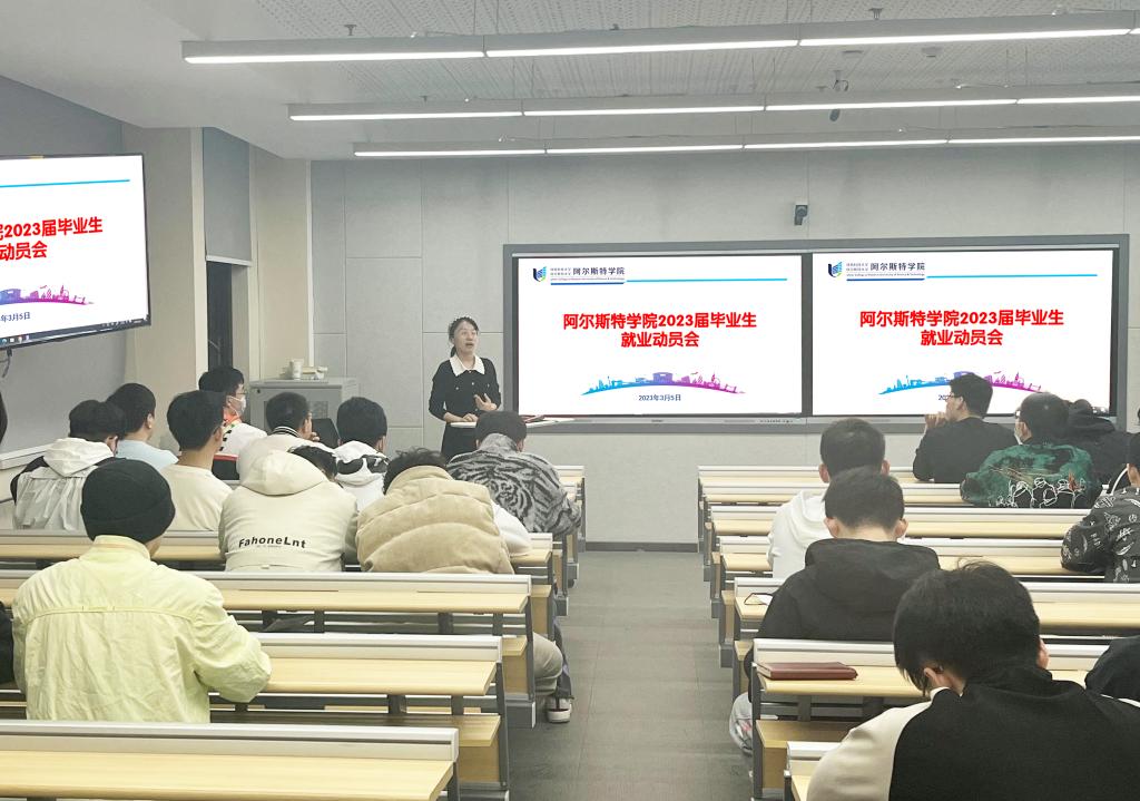 為切實做好春季學(xué)期畢業(yè)生就業(yè)指導(dǎo)工作,提升學(xué)生就業(yè)意識和能力,3月5日晚,阿爾斯特學(xué)院在C321教室召開2023屆畢業(yè)生春招就業(yè)動員會。學(xué)院2019級全體國內(nèi)畢業(yè)生參加了動員會。