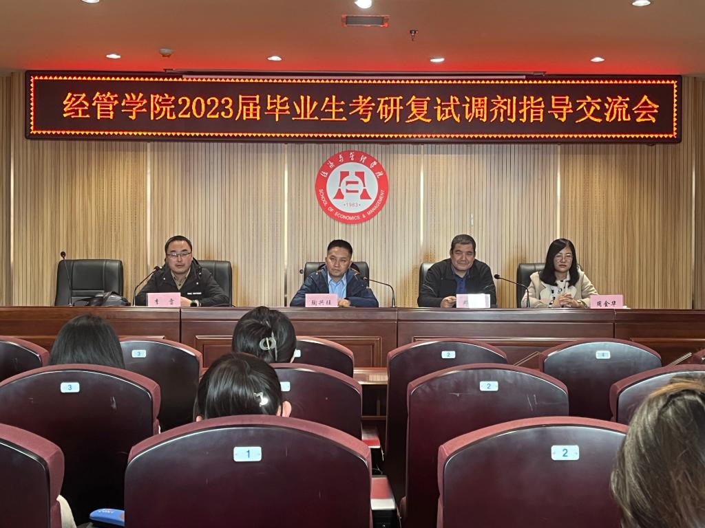 為進一步做好2023屆考研學(xué)生復(fù)試調(diào)劑工作,指導(dǎo)學(xué)生更好的掌握考研復(fù)試技巧,提前做好復(fù)試及調(diào)劑相關(guān)準備。3月20日,經(jīng)濟與管理學(xué)院在人文樓A712會議室舉辦2023屆畢業(yè)生考研復(fù)試調(diào)劑指導(dǎo)交流會。學(xué)院學(xué)生工作負責(zé)人陶興旺、教師代表、畢業(yè)班輔導(dǎo)員及54名擬參加復(fù)試調(diào)劑的考研學(xué)生參加交流會。