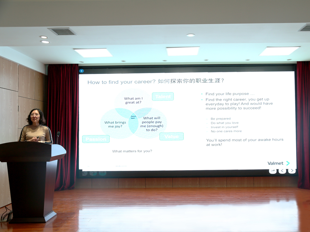 丁富生從如何探索職業(yè)生涯、企業(yè)如何選拔人才和來自企業(yè)的建議三方面展開,通過對“維美德人才十六宮格”和“維美德潛能模型”的深入講解,為學(xué)生求職開拓思路、提供借鑒,同學(xué)們紛紛表示受益匪淺。