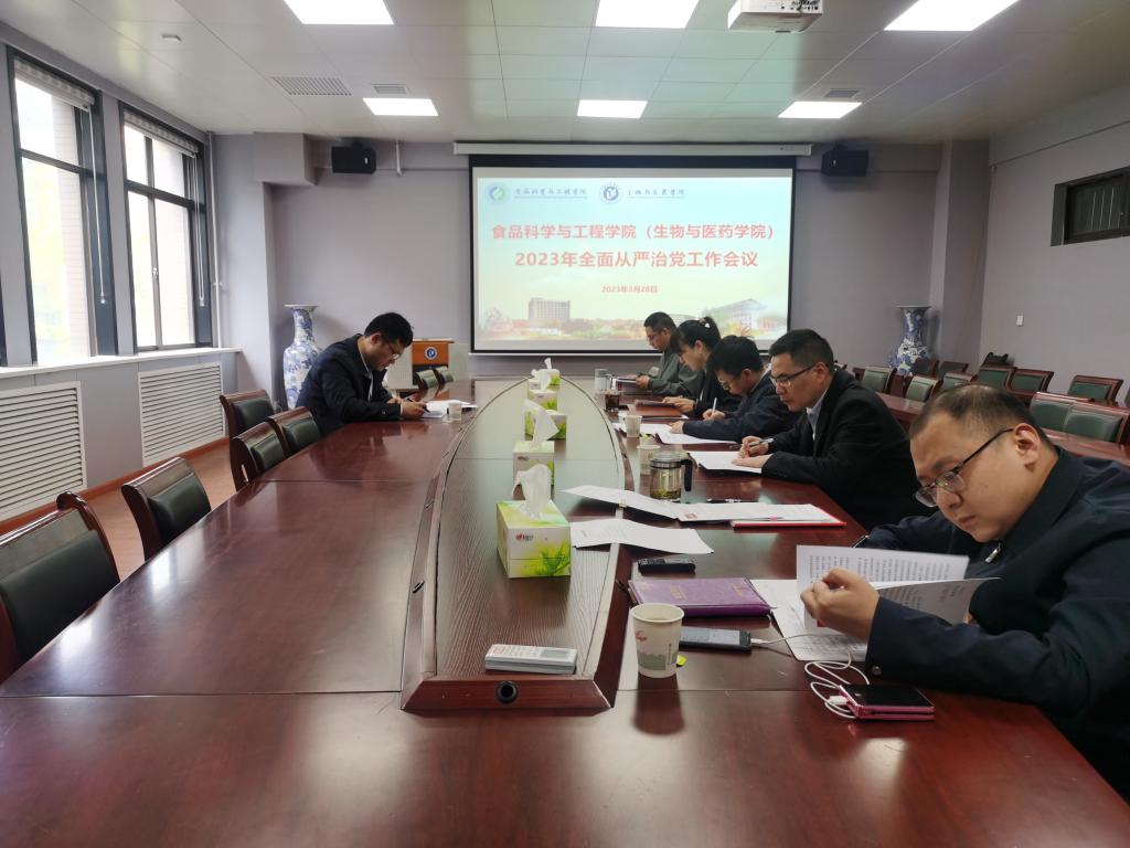 為深入學習宣傳貫徹黨的二十大精神,持之以恒推進全面從嚴治黨向縱深發(fā)展,近日,食品科學與工程學院(生物與醫(yī)藥學院)召開2023年全面從嚴治黨工作會議。學院黨政班子成員、黨委委員、黨政辦公室主任和黨委組織員參加會議。會議由學院黨委副書記、副院長(主持工作)李國梁主持。