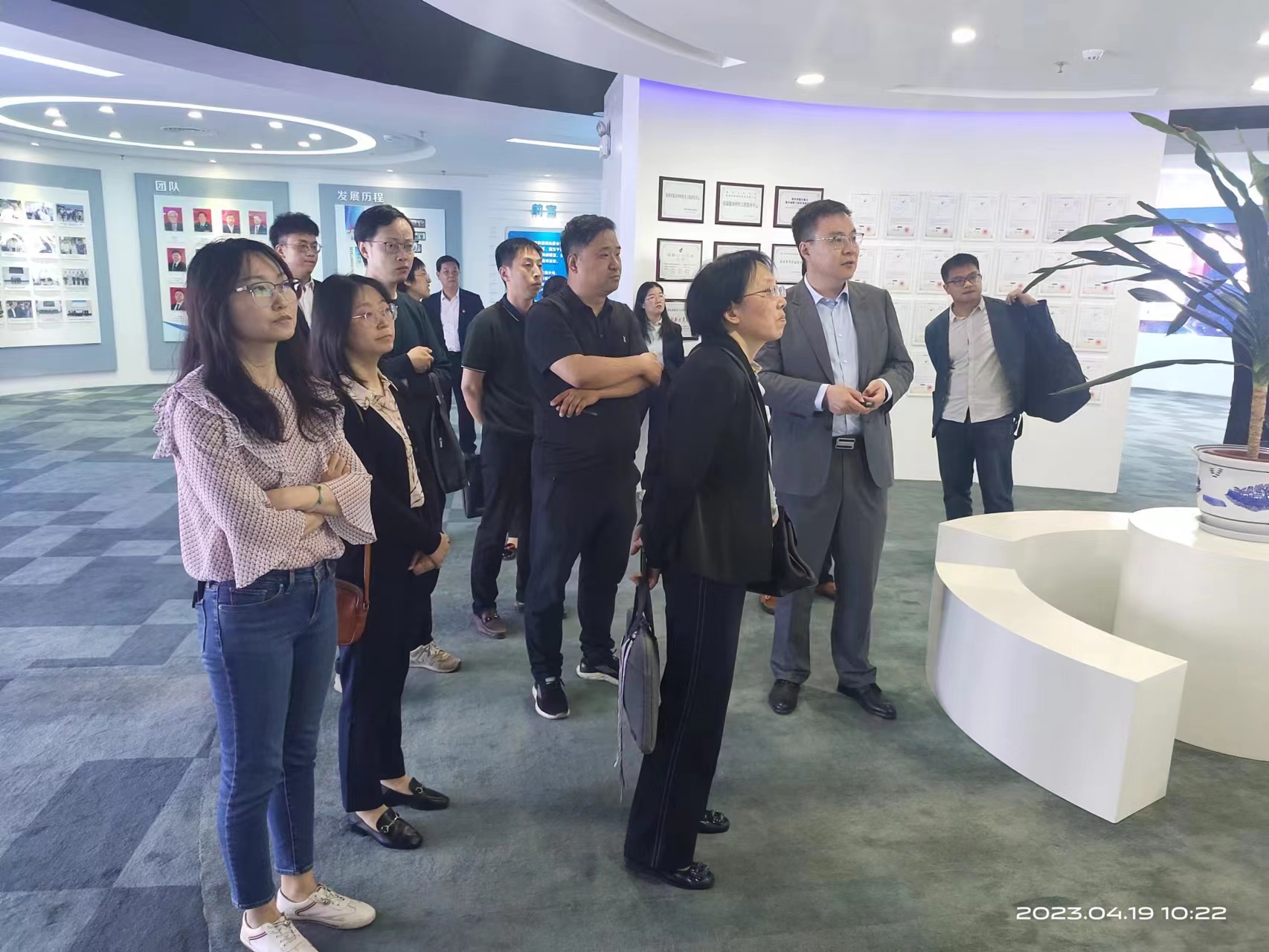 陜西華秦科技實業(yè)股份有限公司常務副總經(jīng)理劉鵬介紹了企業(yè)的相關產(chǎn)品和研究方向,并帶領參觀了陜西華秦科技實業(yè)股份有限公司的專題展廳。孫紀洲對陜西科技大學一行的來訪表示歡迎,并分別介紹了公司目前在各領域的技術需求和今后的發(fā)展方向。