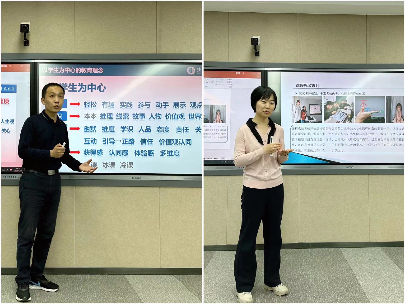 兩位老師精彩的匯報博得在場熱烈掌聲和共鳴。隨后,與會教師結合在阿爾斯特學院的教學實踐和感悟,就引進課程和共建課程如何開展課程思政進行了深入探討交流。大家一致認為,課程思政絕不是簡單的“課程+思政”,傳道者需知行合一才能貫徹“立德樹人”根本任務,課程思政要杜絕形式主義,做到有深度、不生硬,以達到春風化雨、潤物無聲的效果。