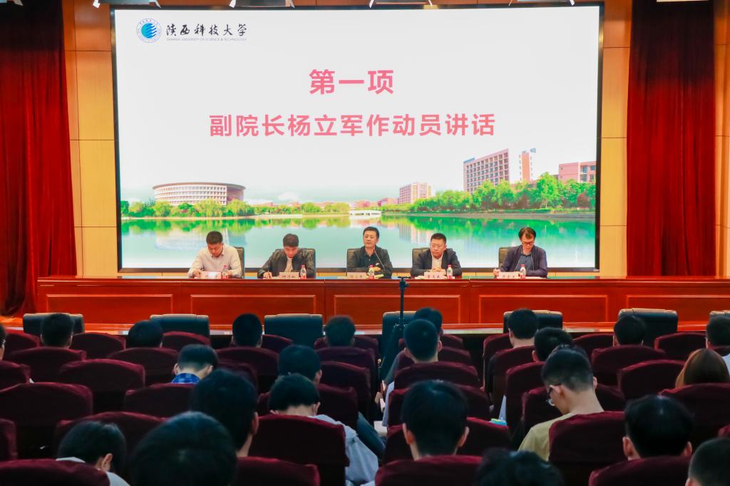 為深入貫徹落實學(xué)?!叭比瞬排囵B(yǎng)輸出目標(biāo),幫助學(xué)生把握考研就業(yè)形勢,機(jī)電工程學(xué)院于5月12日下午在圖書館學(xué)術(shù)報告廳舉行2024屆畢業(yè)生考研就業(yè)動員大會。副院長楊立軍、院長助理何乃如及相關(guān)教研室老師出席此次大會,2024屆輔導(dǎo)員及全體學(xué)生參加了本次大會。會議由黨委副書記景馬良主持。