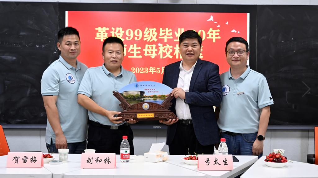 劉和林致歡迎詞,對校友回家表示了熱烈歡迎,并向校友們介紹了學校、學院近年學科建設(shè)、科研獲獎、專業(yè)賽事、人才培養(yǎng)等方面取得的成績,期待校友們對學校發(fā)展多多建言獻策。座談會持續(xù)近三小時,校友們對學校、學院在“三創(chuàng)兩遷”精神指引下取得的輝煌成績表示祝賀,師生們激情澎湃地回顧了上學時的點點滴滴,期間杜少勛教授帶病趕來參加聚會更是讓校友們感動萬分。校友們紛紛表達對母校和恩師的感念,感謝所學知識和做人的道理是他們事業(yè)成長的巨大幫助,并表示愿為母校騰飛貢獻自己的力量。