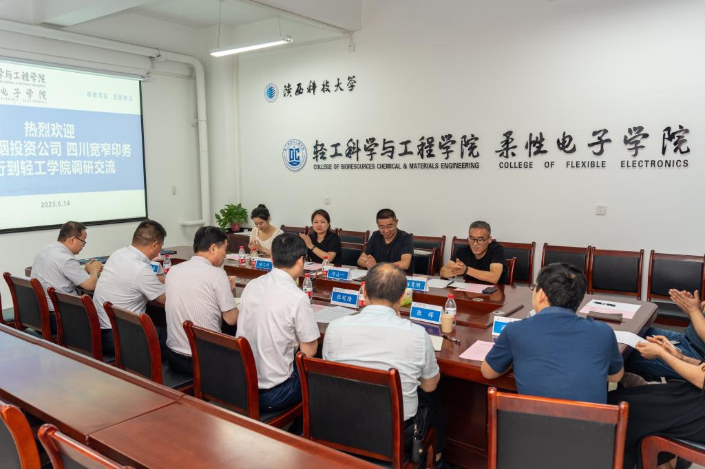 6月14日,四川中煙投資有限責(zé)任公司、四川寬窄印務(wù)有限責(zé)任公司一行到輕工科學(xué)與工程學(xué)院(柔性電子學(xué)院)調(diào)研交流,并簽署“產(chǎn)學(xué)研戰(zhàn)略合作框架協(xié)議”。四川中煙投資公司總經(jīng)理邱沾一,四川寬窄印務(wù)總經(jīng)理胡文婷、生產(chǎn)技術(shù)總監(jiān)趙育明、管理中心副經(jīng)理彭友瓊,輕工學(xué)院班子成員及包裝工程系、印刷工程系負(fù)責(zé)人參加會(huì)議。會(huì)議由輕工學(xué)院黨委副書(shū)記張乾隆主持。
