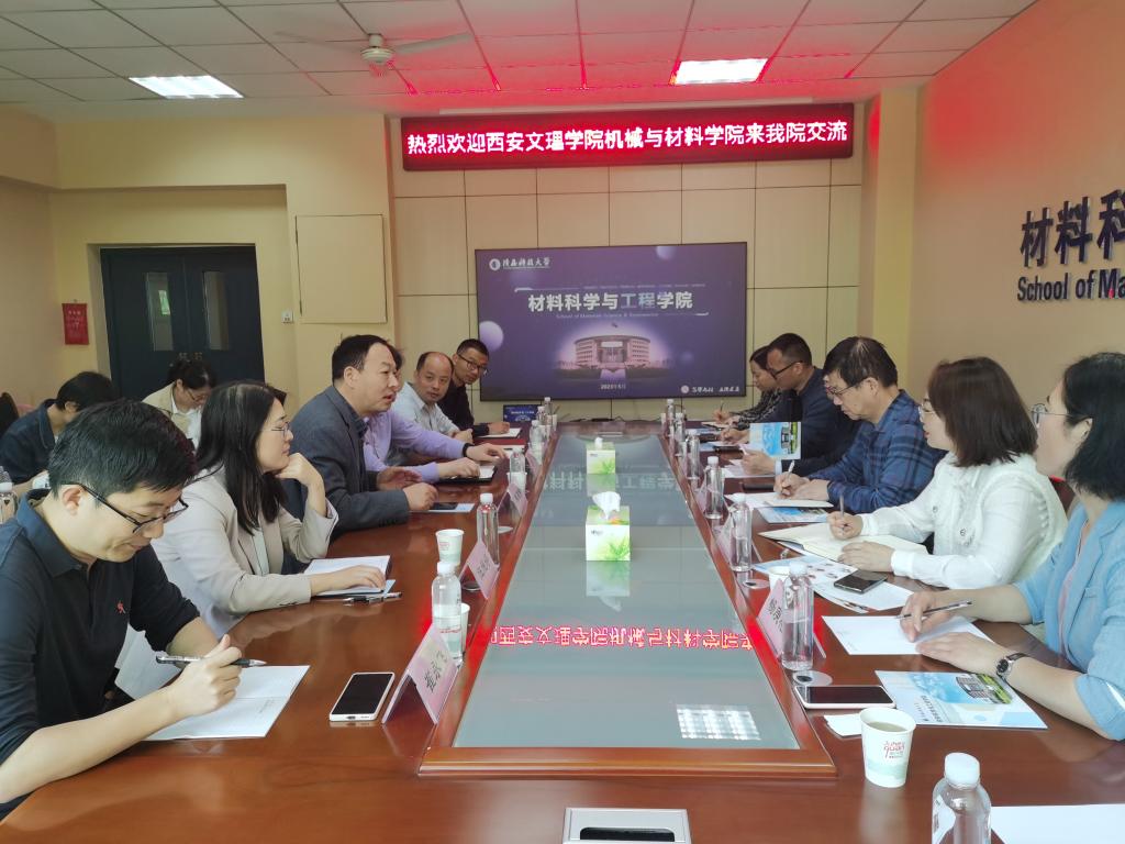 近日,西安文理學院機械與材料學院院長張運良、教學副院長楊森林、院長助理杜麗娜等一行人來我校材料科學與工程學院(文物保護科學與技術學院)進行調研交流。材料學院院長朱建鋒,副院長劉輝、院長助理伍媛婷、歐陽海波,無機非金屬材料工程系主任楊進、材料物理系副主任崔永飛等教師代表參加座談,朱建鋒主持會議。