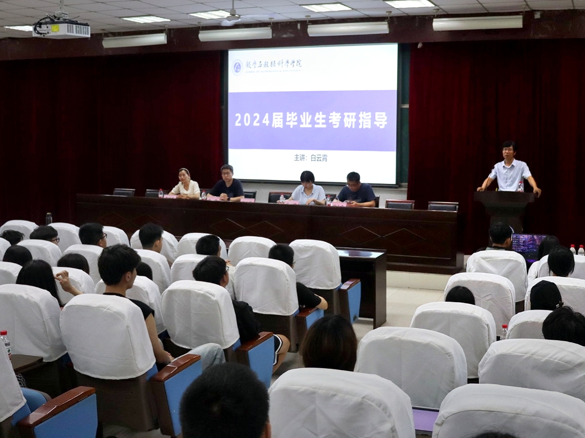 為深入貫徹落實學校本科人才培養(yǎng)“三三三制”輸出結(jié)構(gòu)目標,引導學生理性報考、科學復習,6月19日下午數(shù)學與數(shù)據(jù)科學學院在教三101召開2024屆畢業(yè)生考研動員大會。數(shù)學學院副院長白云霄、院長助理宋沛、各系教師代表、2023屆考研學生代表及2024屆全體考研學生參加了動員會,會議由2024屆畢業(yè)班輔導員王蒙主持。
