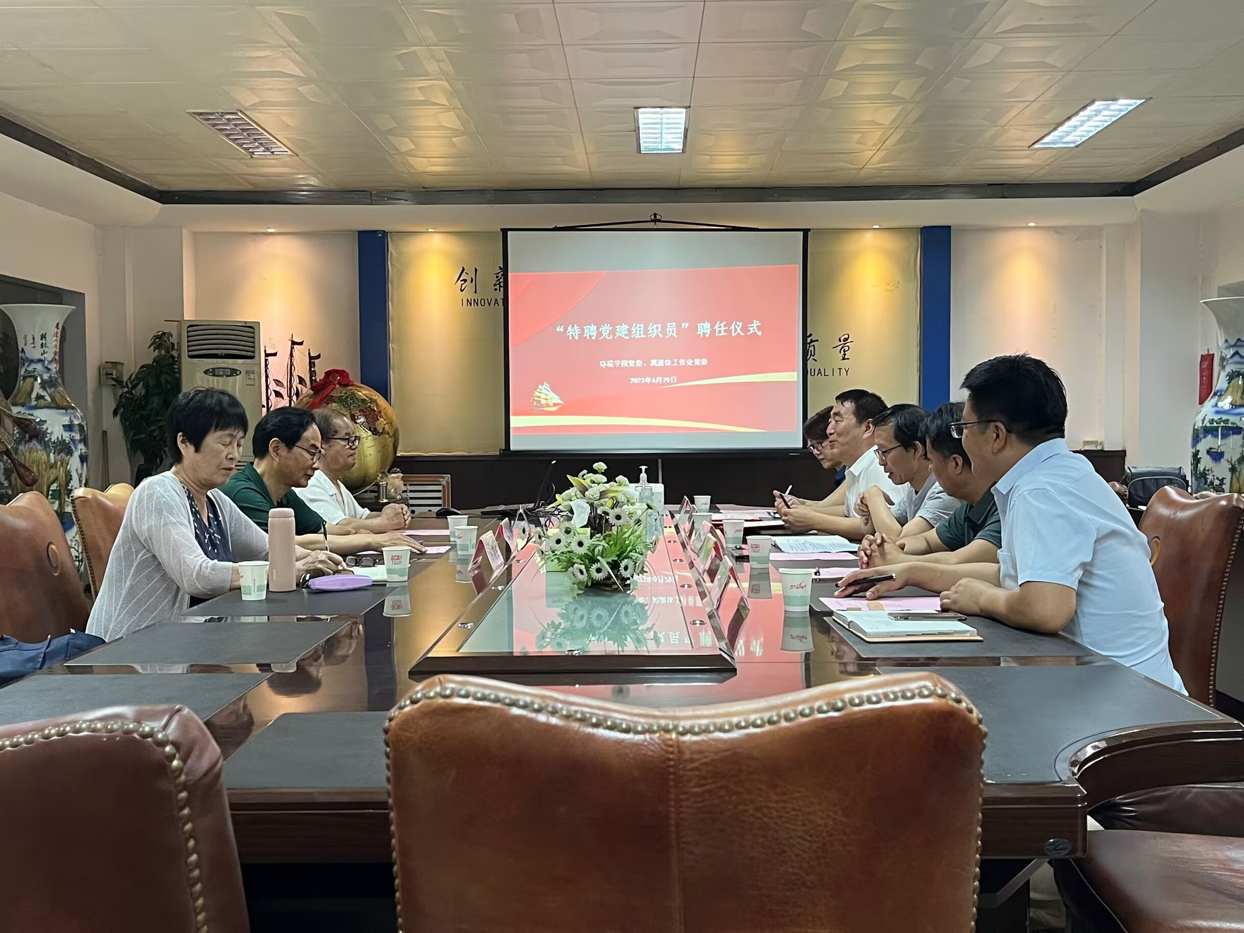 為貫徹落實(shí)中辦、國(guó)辦印發(fā)《關(guān)于加強(qiáng)新時(shí)代關(guān)心下一代工作委員會(huì)工作的意見(jiàn)》,進(jìn)一步將我校關(guān)工委工作融入學(xué)校大思政格局,6月20日上午,校關(guān)心下一代工作委員會(huì)辦公室(離退處)與環(huán)境科學(xué)與工程學(xué)院黨委聯(lián)合舉辦特聘黨建組織員聘任儀式,聘任陳福生、房海燕、史步懷三位退休黨員為特聘黨建組織員。離退處黨委書記張曉東、環(huán)境學(xué)院黨委書記李廣明、離退處黨委副書記高翔、處長(zhǎng)助理苗曉潔、環(huán)境學(xué)院學(xué)生工作負(fù)責(zé)人王念東參加聘任儀式。