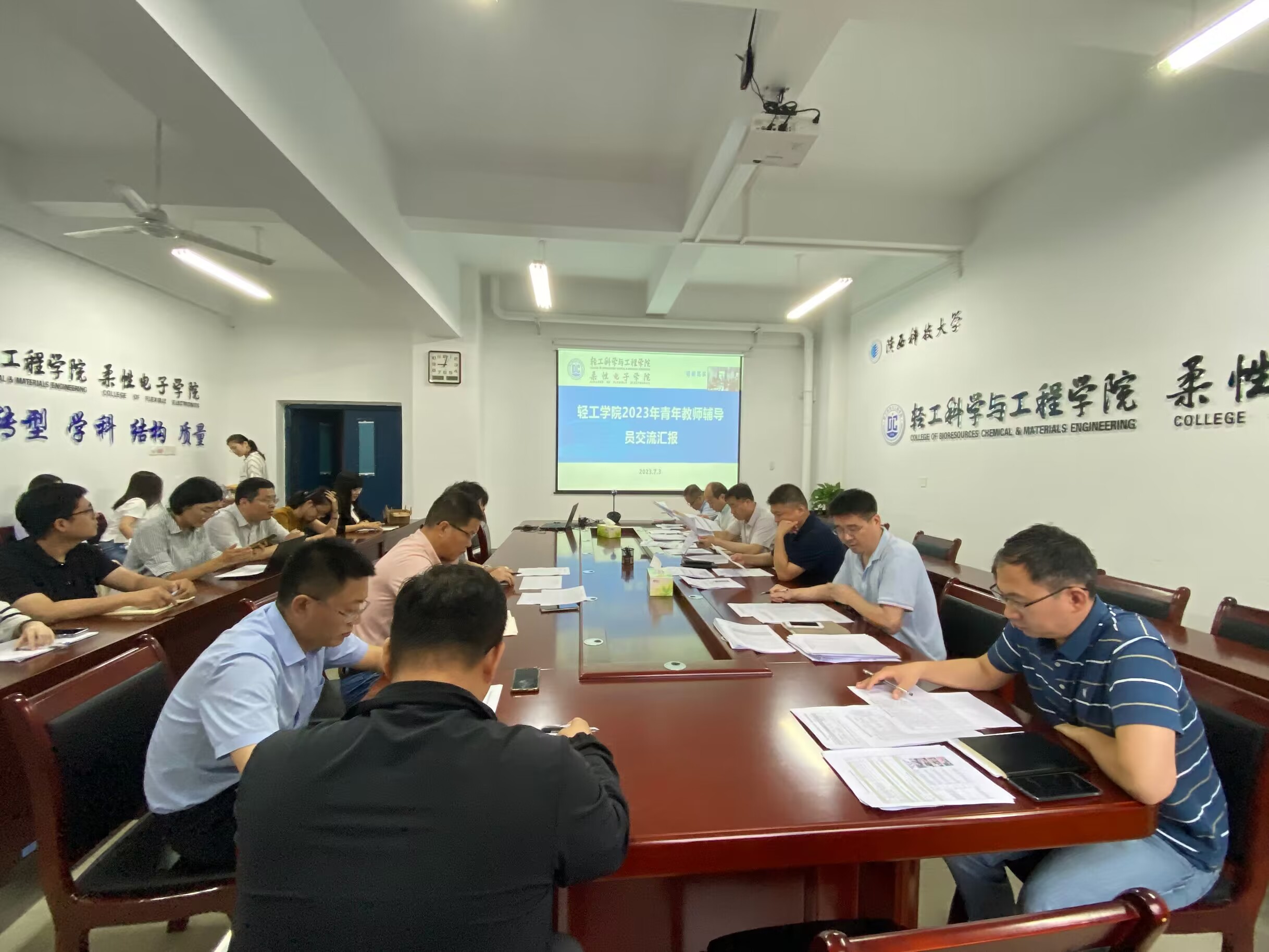 7月3日,輕工科學(xué)與工程學(xué)院(柔性電子學(xué)院)舉行青年教師輔導(dǎo)員(班主任)工作匯報交流會。學(xué)院班子成員、全體青年教師輔導(dǎo)員(班主任)及相關(guān)年級輔導(dǎo)員參會。會議由輕工學(xué)院黨委副書記張乾隆主持。